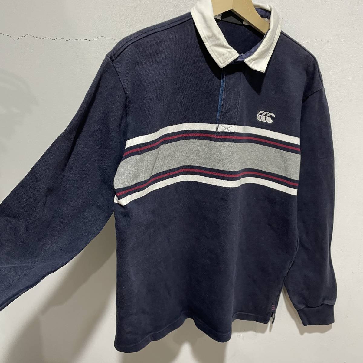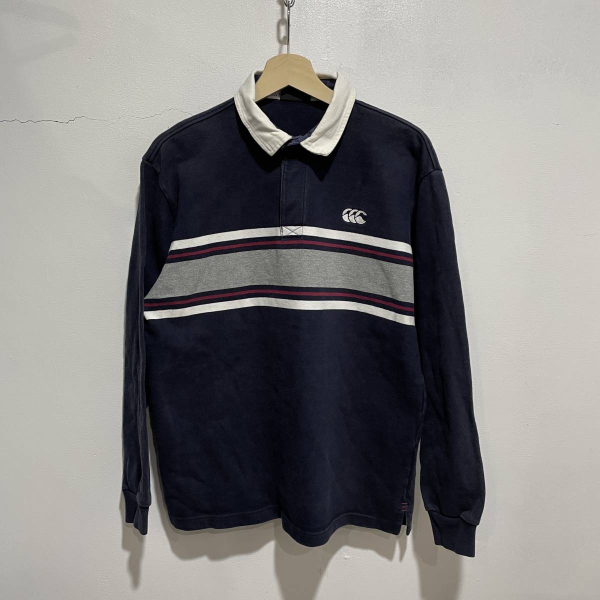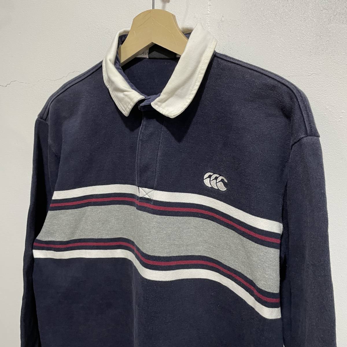 カンタベリーのボーダーラガーシャツになります。少し肉厚のコットン素材でしっかりとした作りになっています。胸にブランドロゴマークが入っています。ネイビーカラーにホワイト、レッド、グレーのボーダー柄が入っていてオシャレです。ラグビーがお好きな方いかがでしょうか!