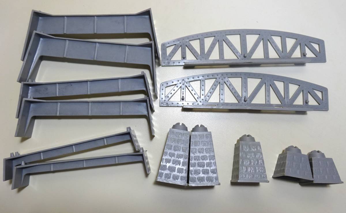 ヨネザワのビッグレーシングパーツ 高架台6、橋桁2、支柱5の合計13点セットです。