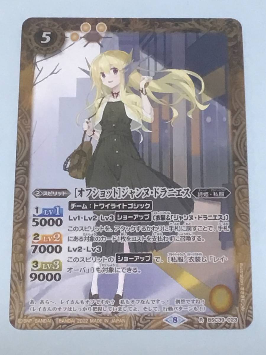 バトルスピリッツBSC39 ディーバブースター 詩姫の戦歌 [オフショット]ジャンヌ・ドラニエス Rになります。 新品です。初期傷を気にされる方は入札をお控え下さい。 ノークレーム、ノーリターン、ノーキャンセルでお願いいたします。 落札後、24時間以内のご連絡、2日以内のお振込みが無い場合は、落札者都合でキャンセルさせて頂きます。ご了承下さい