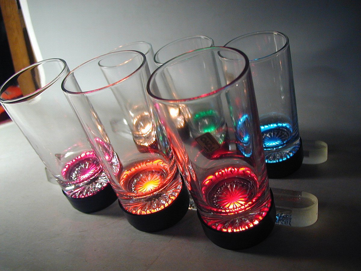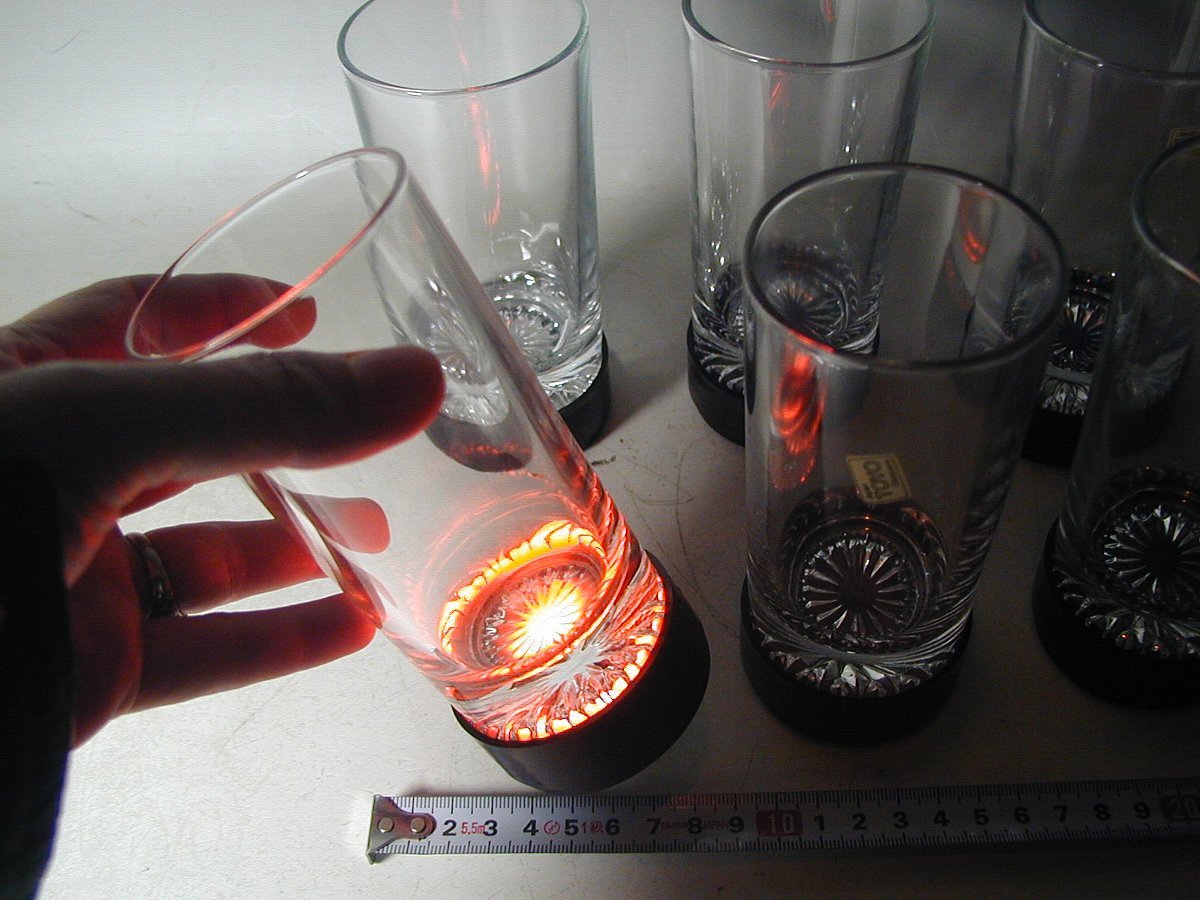 使用状況:昭和の物です。未使用ですが長期保管品です。グラスを持ち上げるとスイッチが入りライトが点灯します。昭和のレトロ感があります