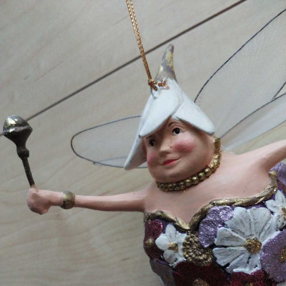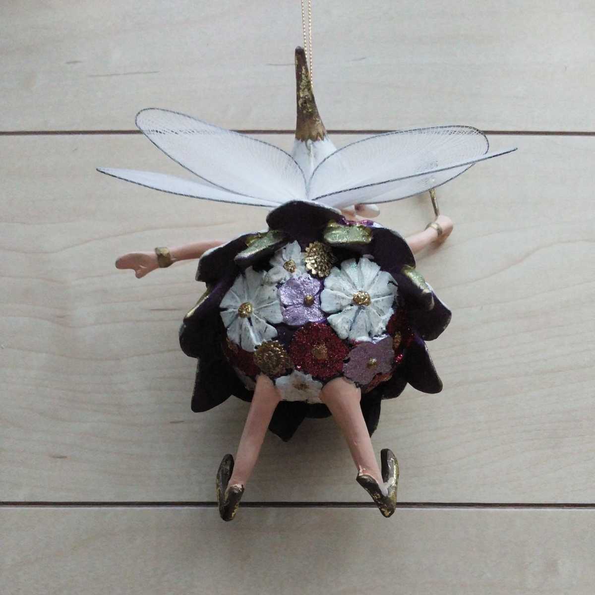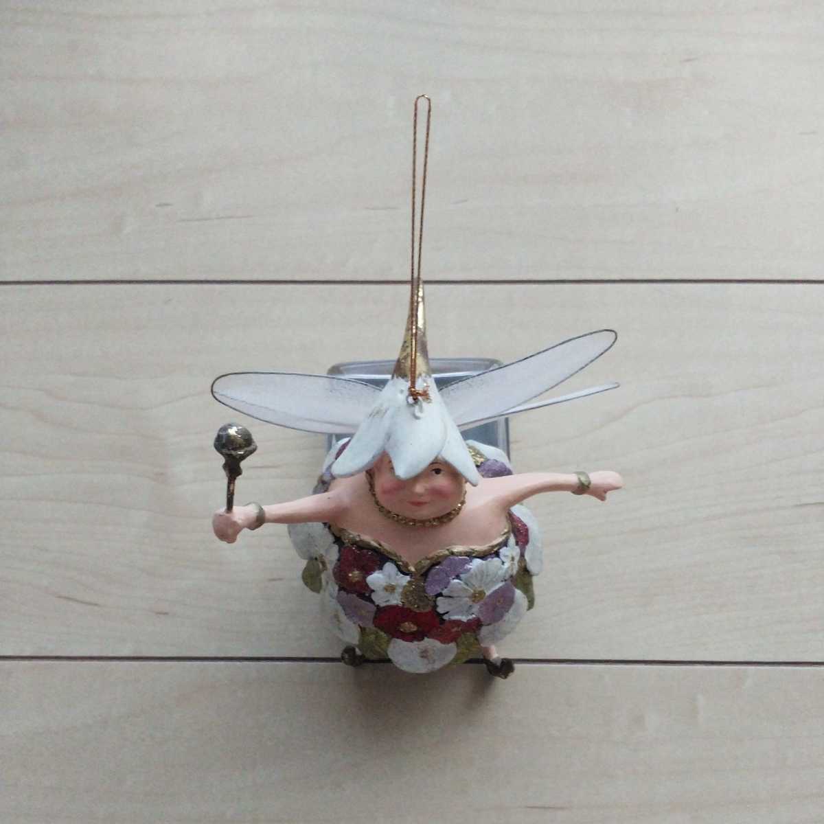 ■普通の妖精に較べ、卑近横濱中華街の広東料理を食べ過ぎたか豊満です。蜻蛉の羽根みたいな物を身に纏ってますが、墜落寸前のところを吊り紐に支えられて居ます。卵を産みそうな膨よかな體付きですが、もし紐が切れたら御免為さい。it’s冗談です。(笑) 壁掛けに如何でしょうか?。