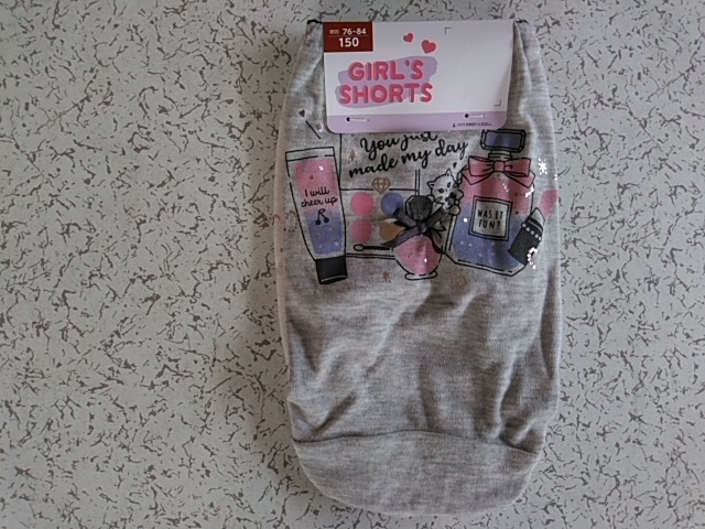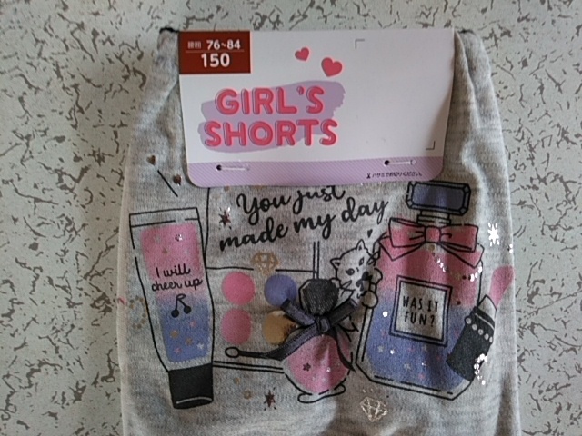 女児 ガールズインナー 白地&グレイ系インゴムショーツ2枚組 2柄(可愛い猫さん&お化粧品) 150サイズ