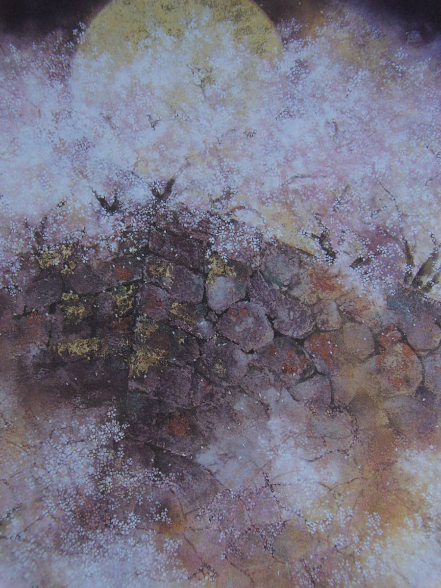 木村圭吾、【花の舞台 津山城址】、希少な額装用画集より、新品額装付、状態良好、送料込み
