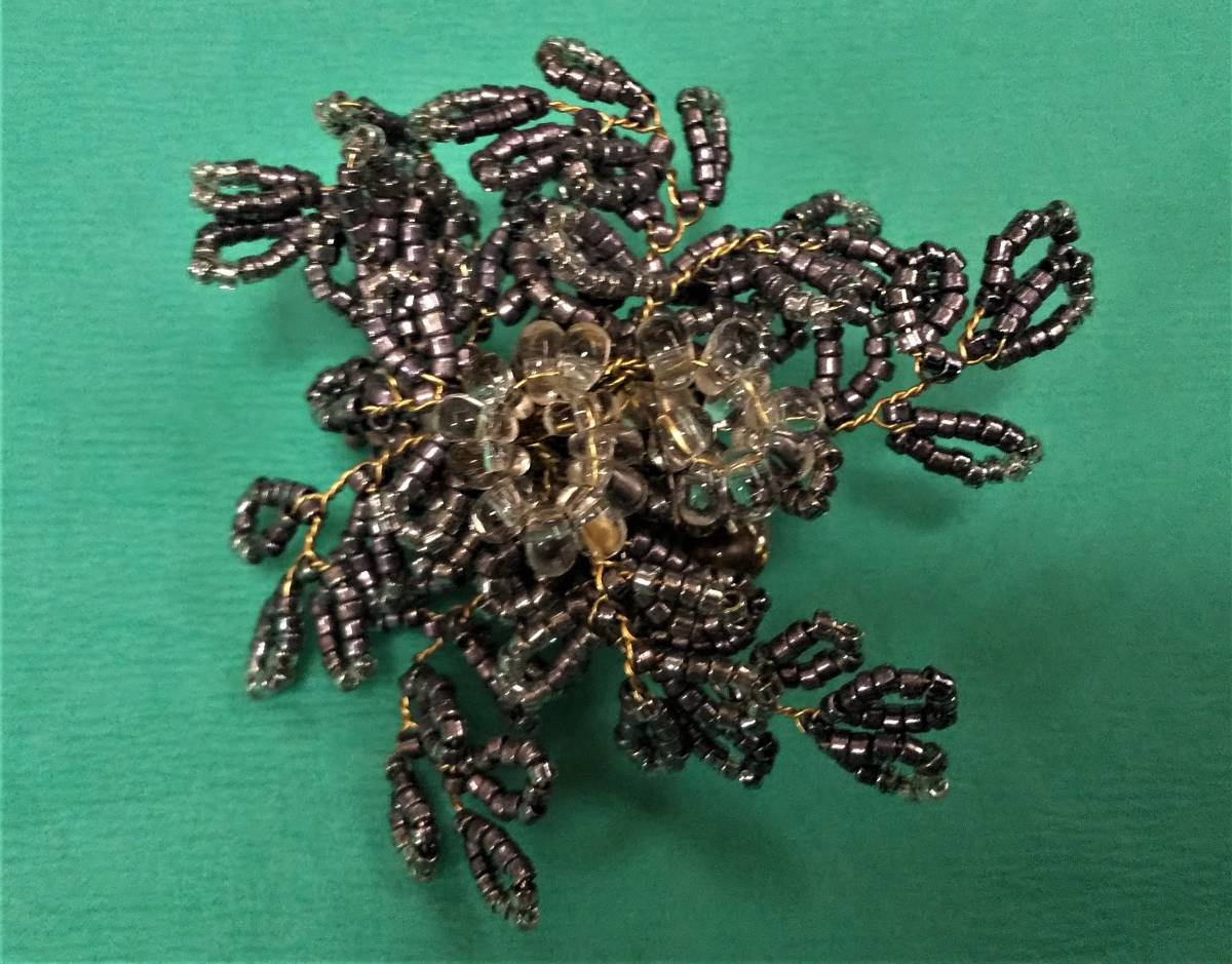 一口コメント=針金の柔らかいものに何かを通して製造されたと思います、花びらのようなものは触れると曲がりますが元に戻ります、中央はクリアーパーツが使用されています・・・★