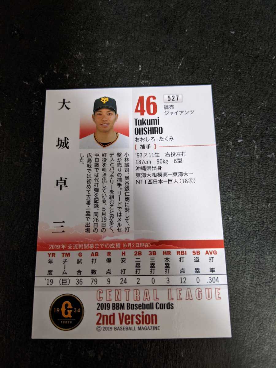 即決★BBM2019 巨人 大城卓三 読売ジャイアンツ