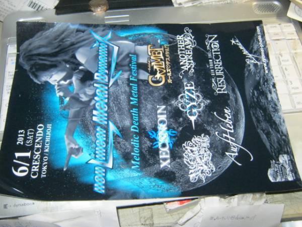 2013.6.1吉祥寺CRESCENDOのMELODIC DEATH METAL FESTIVAL「NONLINEAR METAL DYNAMIX」の記念のステッカーシート。B5版。参加バンドは、XECSNOIN,GALMET,GYZE,ANOTHER STREAM,AUFHEBEN,BIN FROM THE RESURRECTION。状態は、EX-。