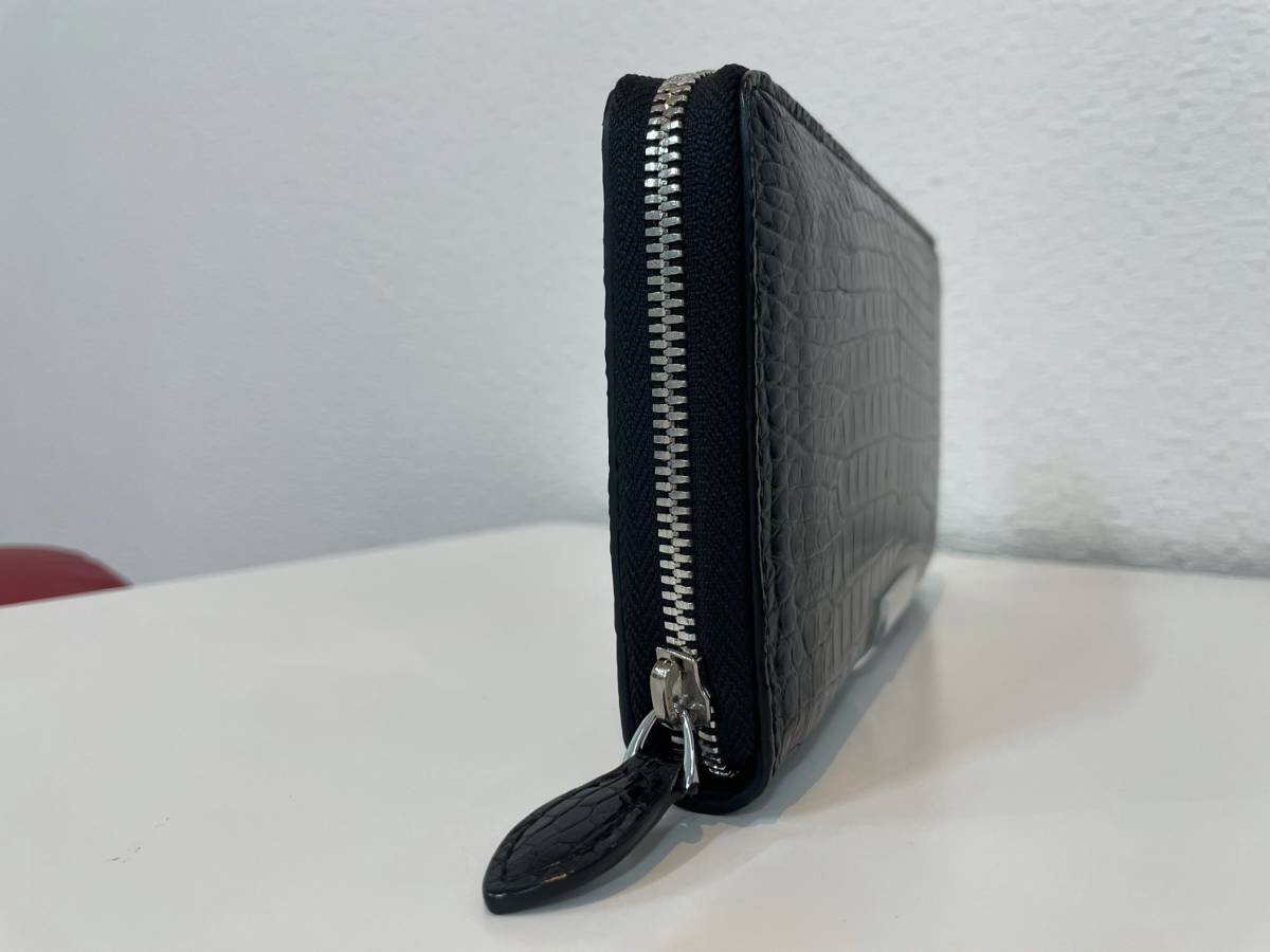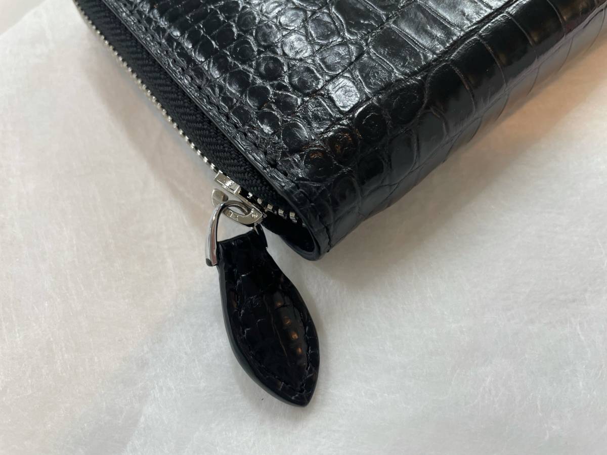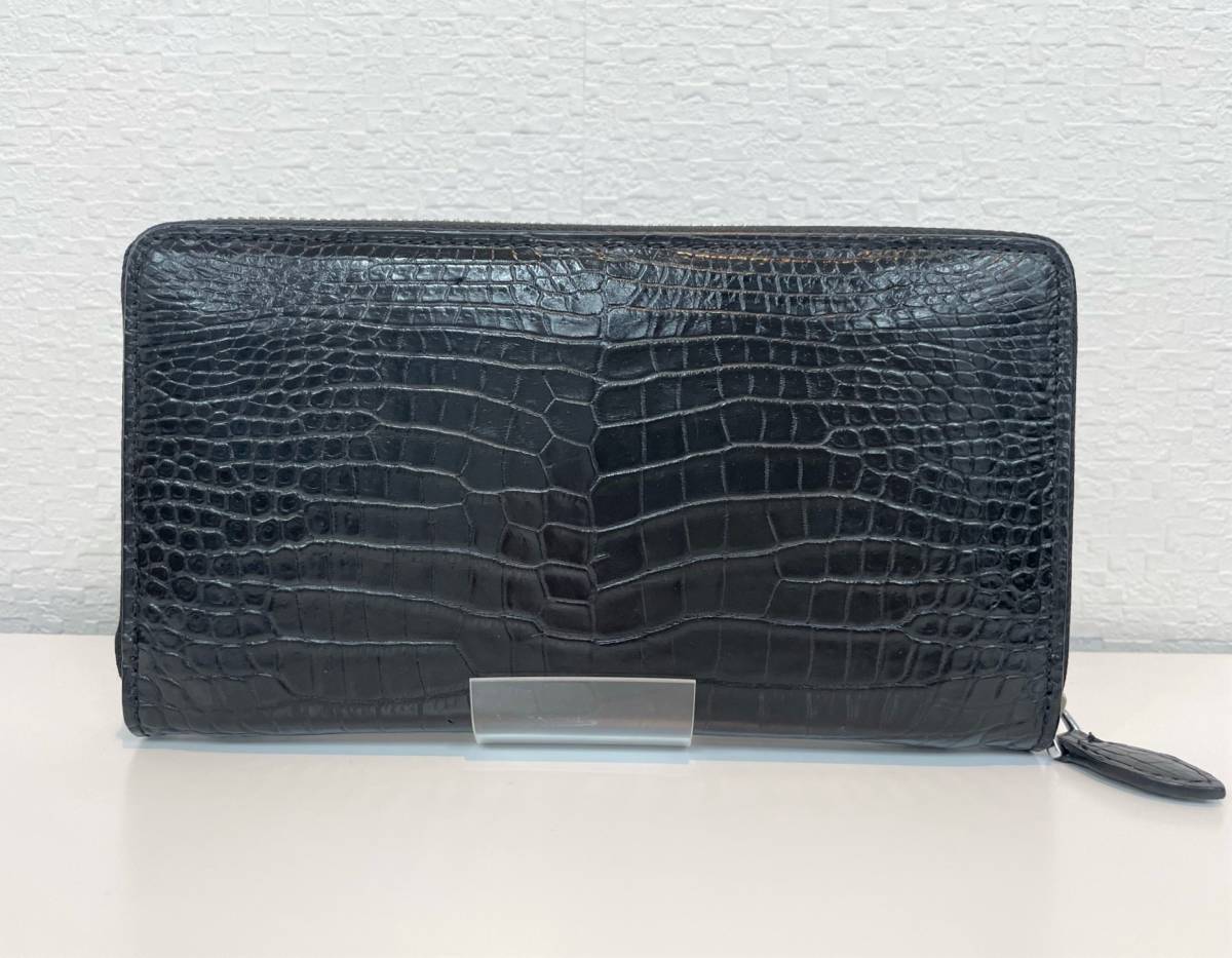 91150 * 【アウトレット】 Crocodile クロコダイル ラウンドファスナー メンズ 長財布 無双 一枚革 ブラック ワニ 1点物 OUTLET