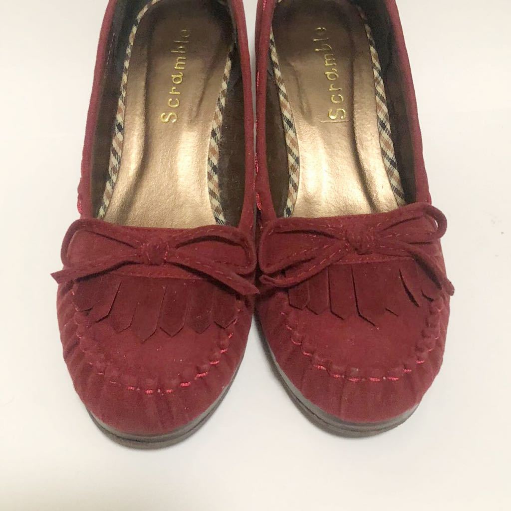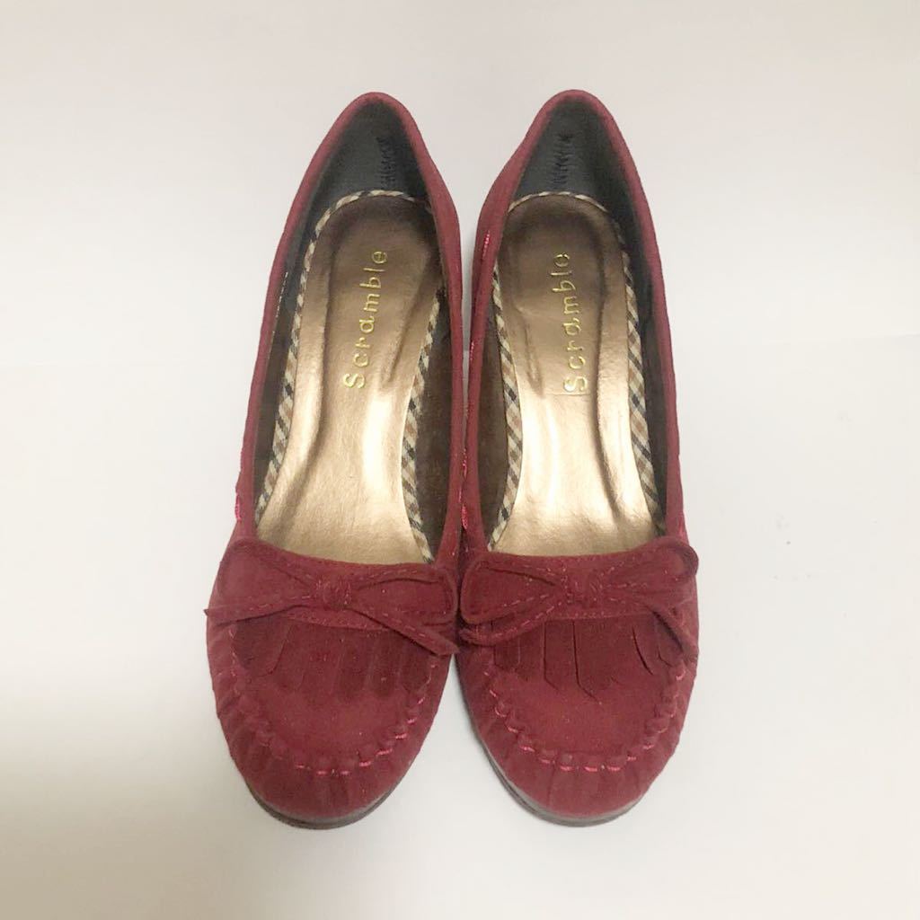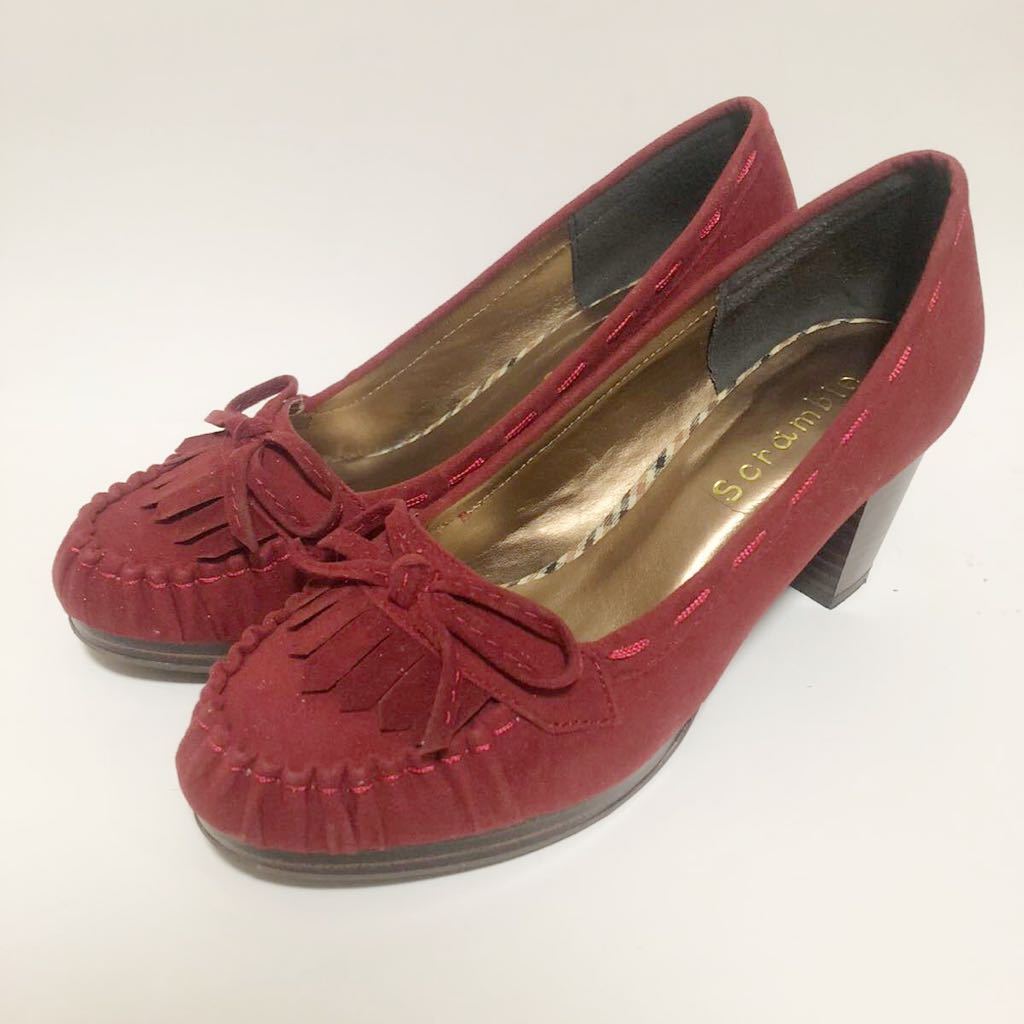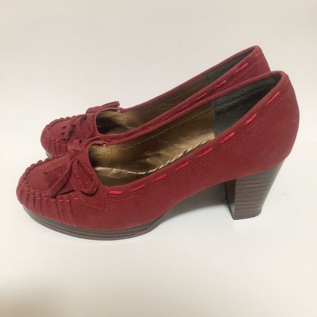 フリンジ付きのレッドパンプスです。