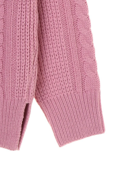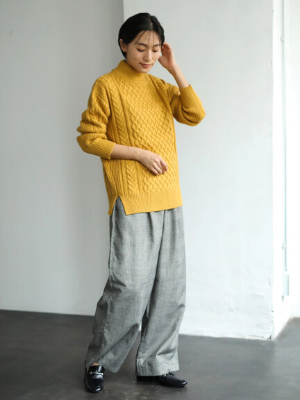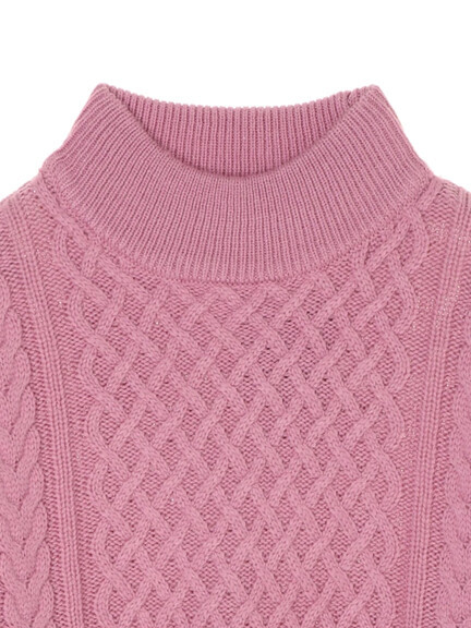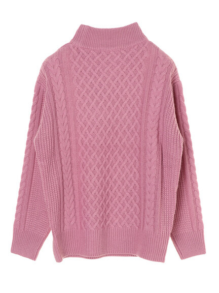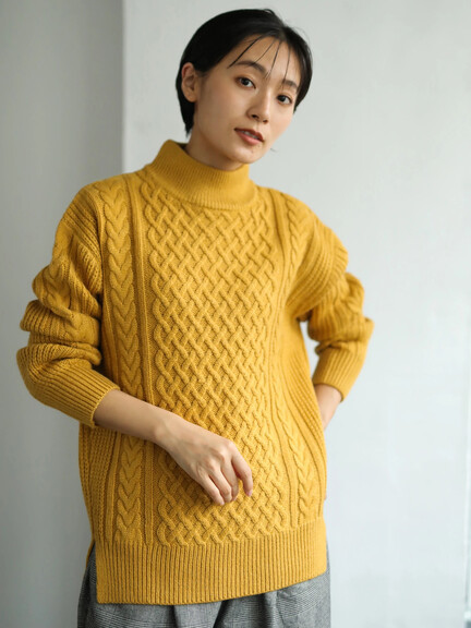 ざっくり感のあるケーブル編みで表情感をプラスしたハイネックニットプルオーバー