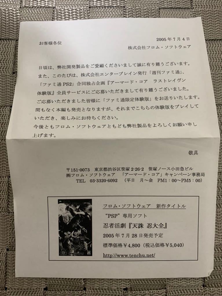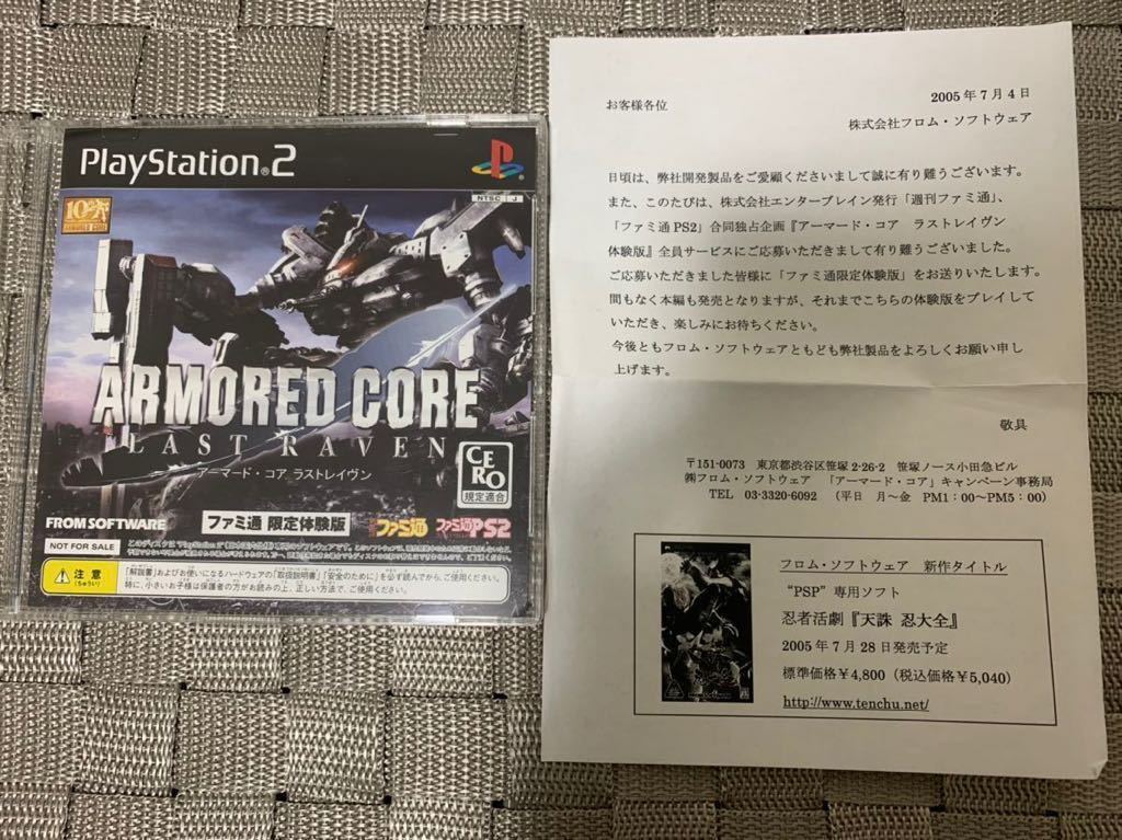 フロムソフトウェアのアーマードコア ラストレイブンのプレイステーション2(PlayStation2)体験版です。