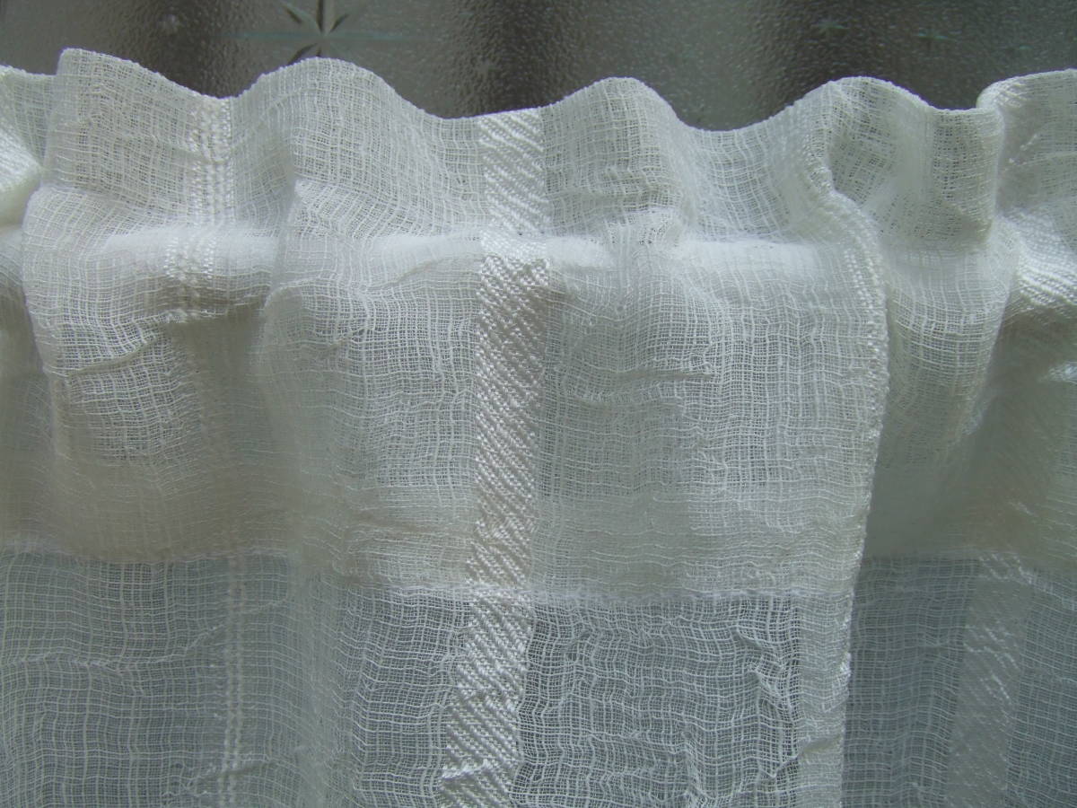 ■生地:ポリエステル100% ■サイズ:実寸幅140cmx丈100cm ■色:オフホワイト ■商品名:NO-1128 ■その他:小窓は勿論、お部屋の間仕切りや、棚などの目隠しとしてもお使いいただけます。トルコ製の生地です。 |