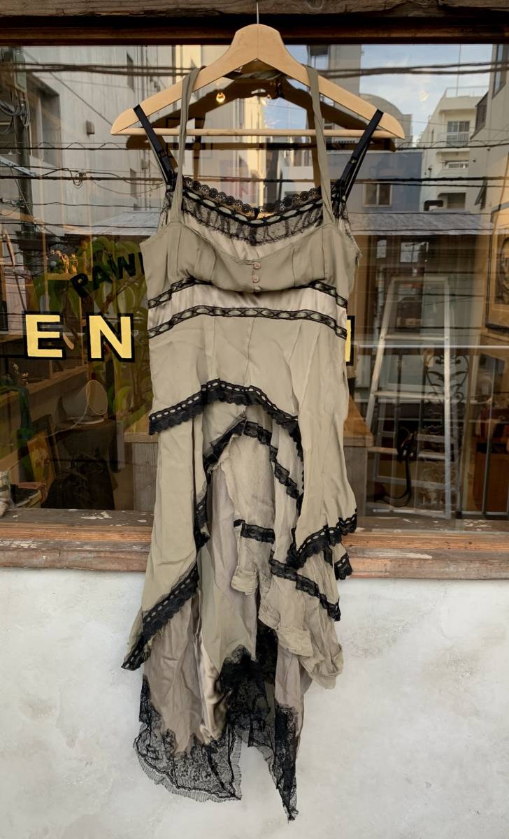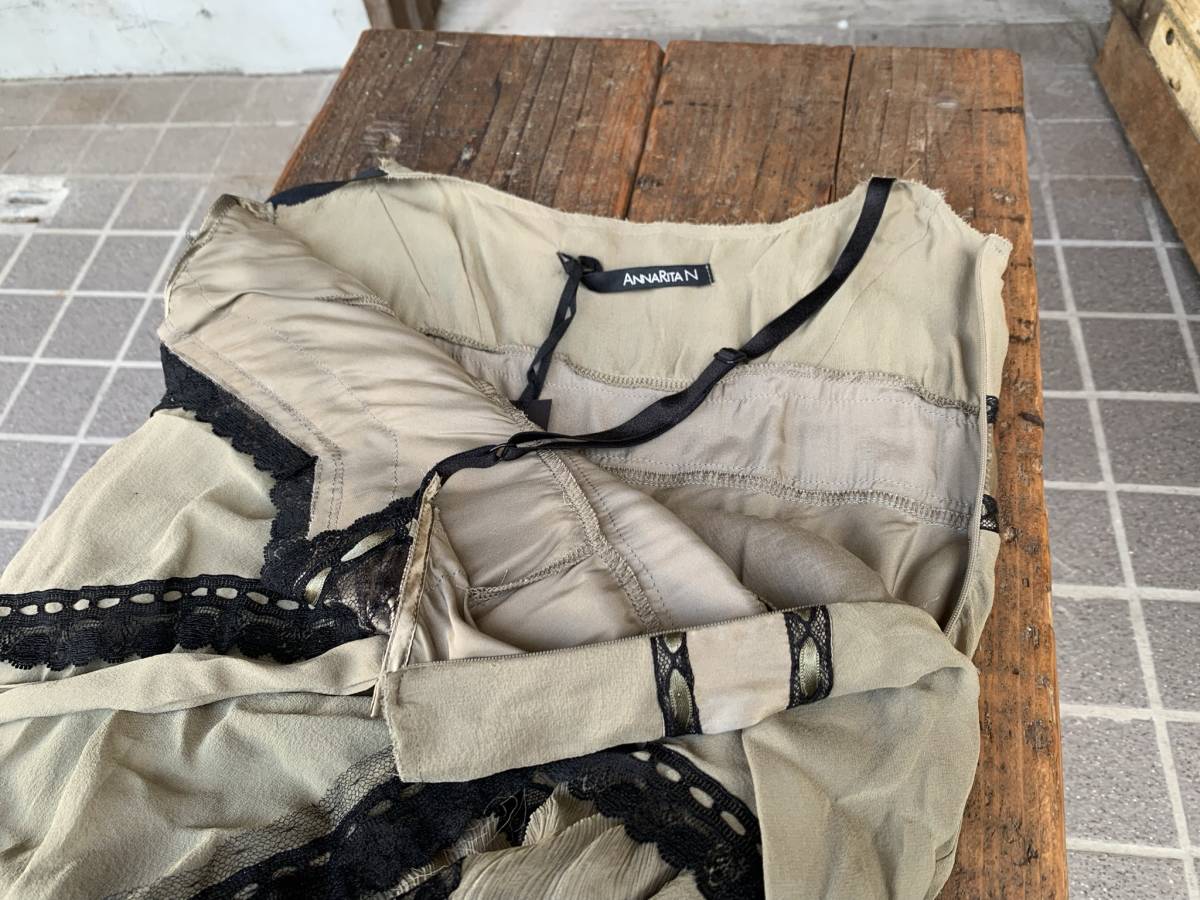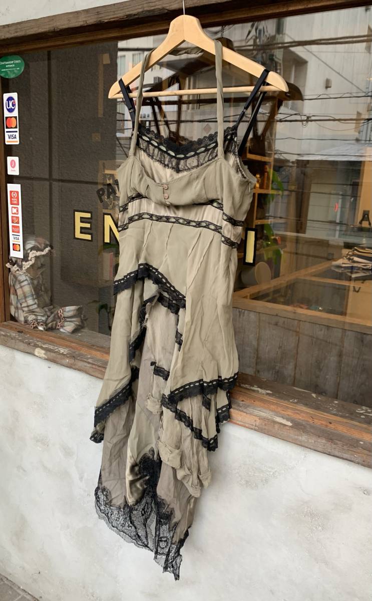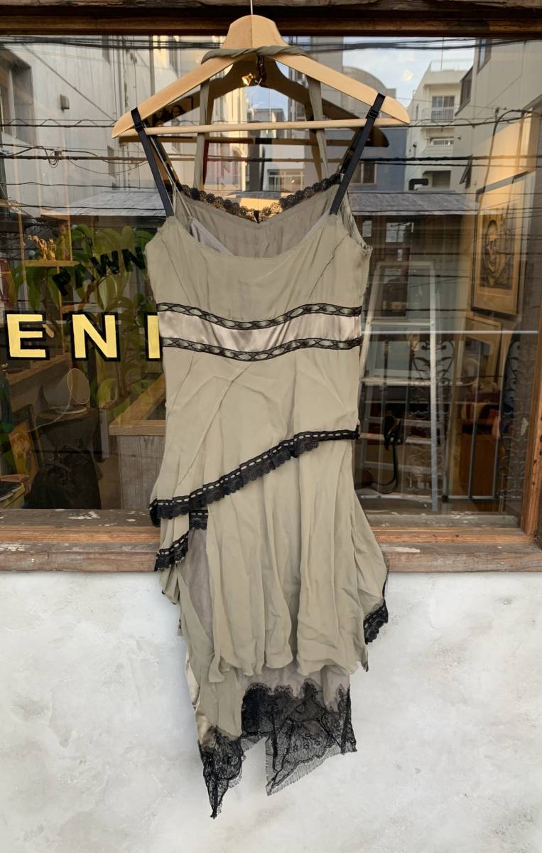 ★未使用★ANNARITA N★アンナリタエンネ★キャミソール★ラッフル★ワンピース★ドレス★シルク★カーキ★レディース★婦人★サイズ★42★