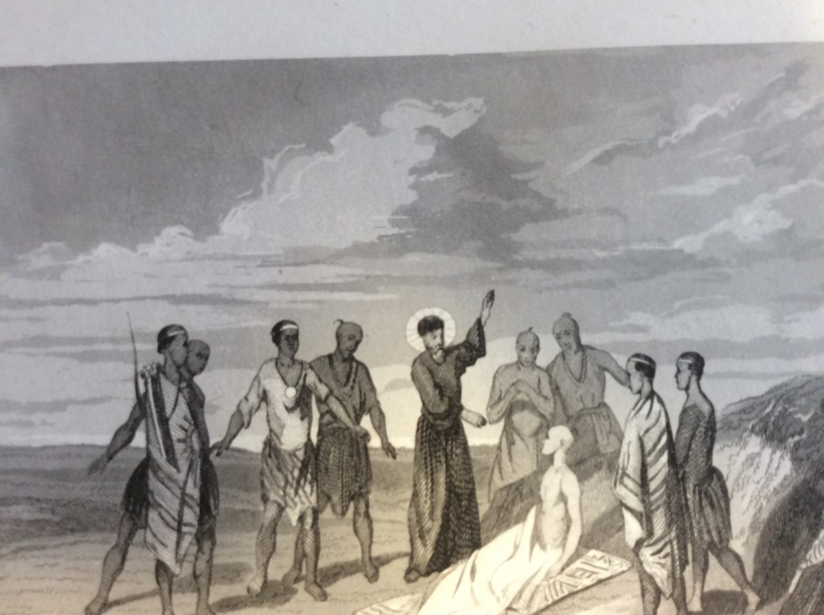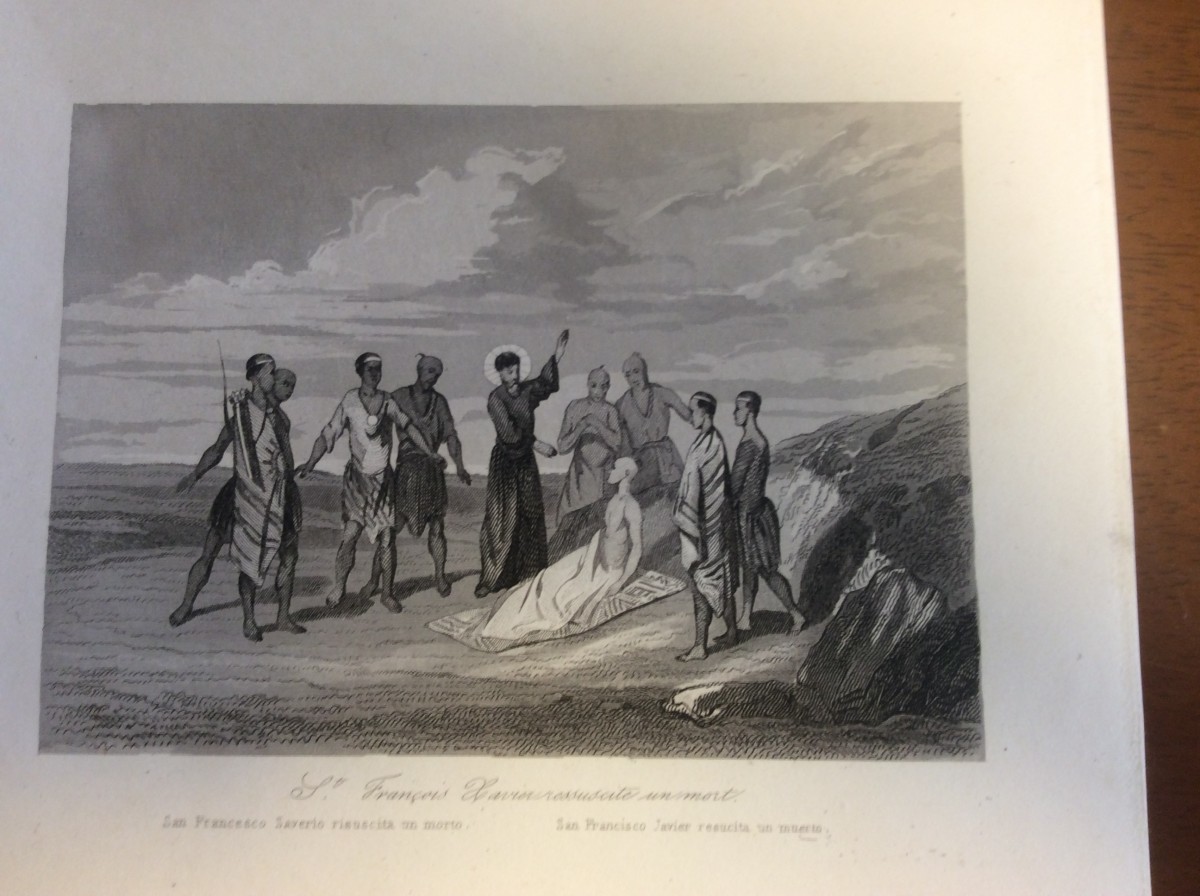 1849年にパリで刊行されたアンリオン男爵著作のカトリック海外布教の歴史を描いた銅版画です。ゴーム社で刷られた版画です。サイズは14x18cmです。状態は良好ですが、若干の古色やシミがあります。当時のオリジナル版画です。