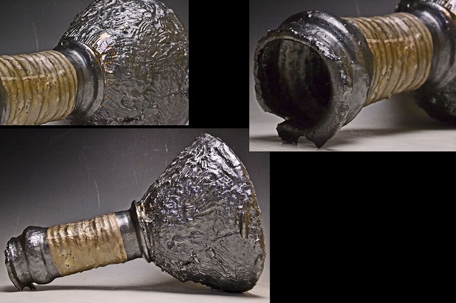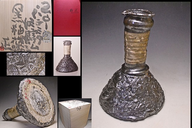 森 正 ★ 黒釉 花器 ★ 共箱 ★ パラミタ美術館 出品作 ★ 同手掲載 図録付 ★ 41cm ★ 希少にして最上手の逸品 ★