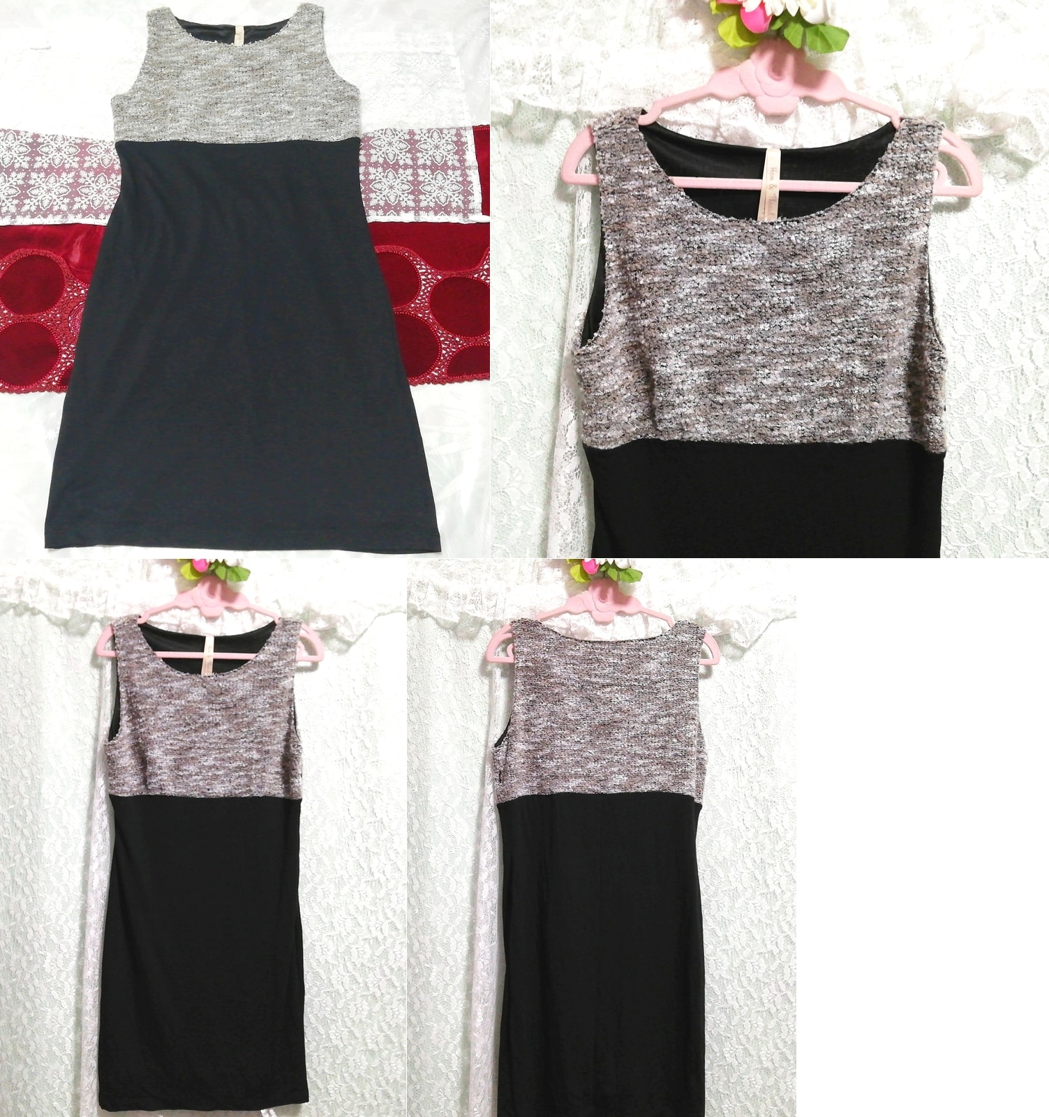 灰トップス黒スカートノースリーブネグリジェワンピース Gray tops black skirt sleeveless negligee dress