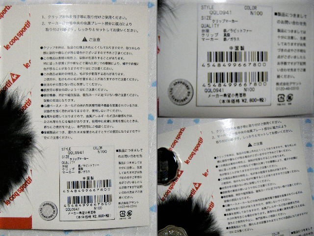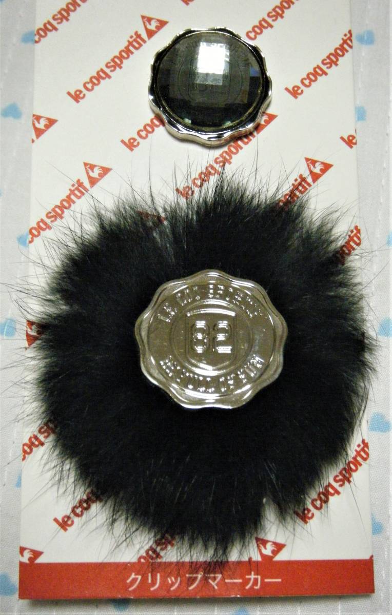 ルコック lecoqsportif GOLF 82 ゴルフ用マグネット式クリップマーカー 黒系 台座:ラビットファー付き 本体:ガラス装飾 定価 3,080円