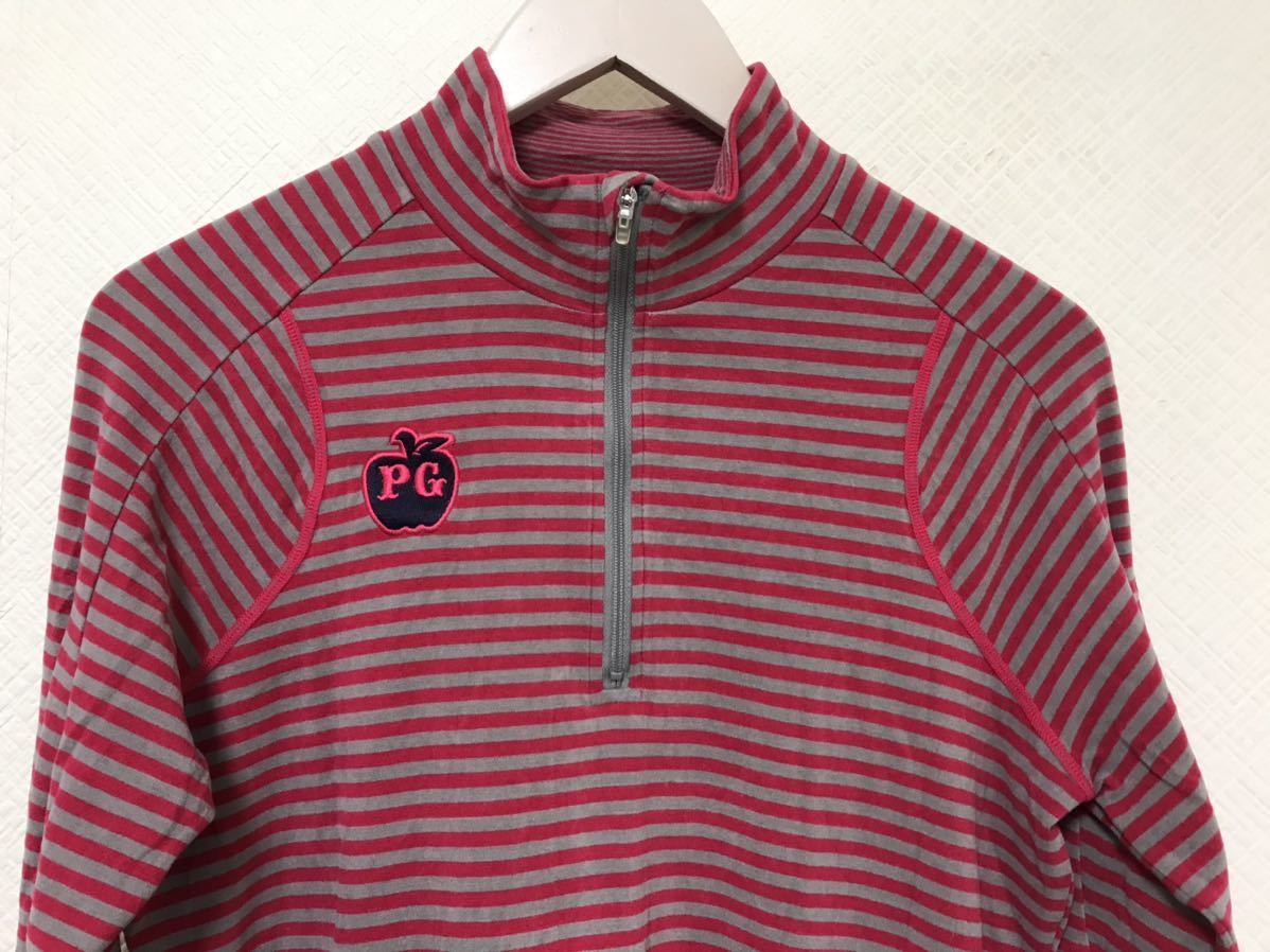 商品名:本物パーリーゲイツPEARLYGATESロゴワッペンハイネックタートルハーフジップ長袖ロングTシャツレディースゴルフ1Sボーダー柄日本製