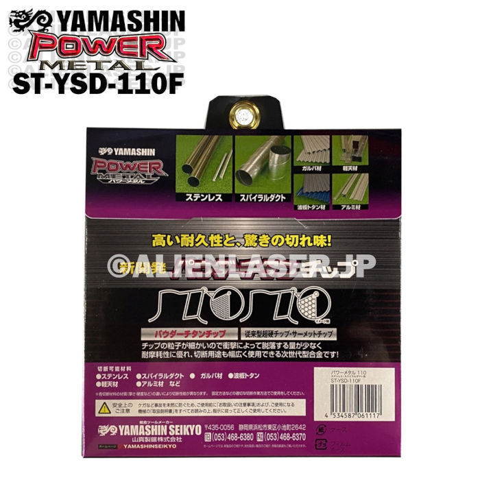 ステンレスパイプやダクトなどの切断にステンレス・スパイラルダクトの切断に適したチップソー。新開発パウダーチタンが実現した、驚きの切れ味と高い耐久性! チップ粒子が細かいので衝撃によって脱落する量が少なく耐摩耗性に優れ、切断用途も幅広く使用できる次世代型合金です。ST-YSD-110F外径110mm中心穴径20mm切削幅(刃厚)1.6mm刃数36P最高使用回転速度Nmax13,000rpmフッ素無適合機種集じんマルノコ・充電マルノコ※モニターの発色具合により、実際のものと色が異なる場合がございます。