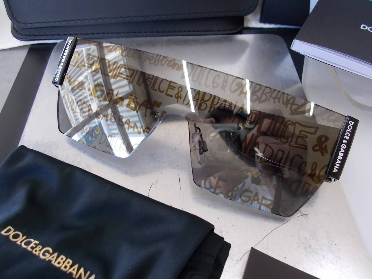 様々な遊び心のある字体の DOLCE&GABBANAのロゴがレンズ前面にあしらわれてド派手なデザインでかなりかっこいいサングラスだと思います。