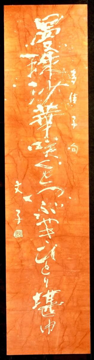 感性冴え渡る美しき色彩感【ろうけつ染め書道家 長野文子 作品群】 創玄展出品作品 詩文作者/橋本多佳子 俳句 額装なし 幅33cm高さ135cm