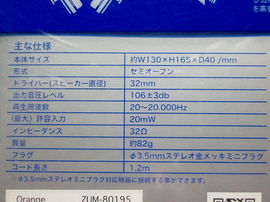 即決 未使用 ZUMREED ヘッドフォン ZHP008 橙/緑 スクエア 四角 ヘッドホン イヤホン ズムリード ズンリード 原宿系 ファッション オレンジ