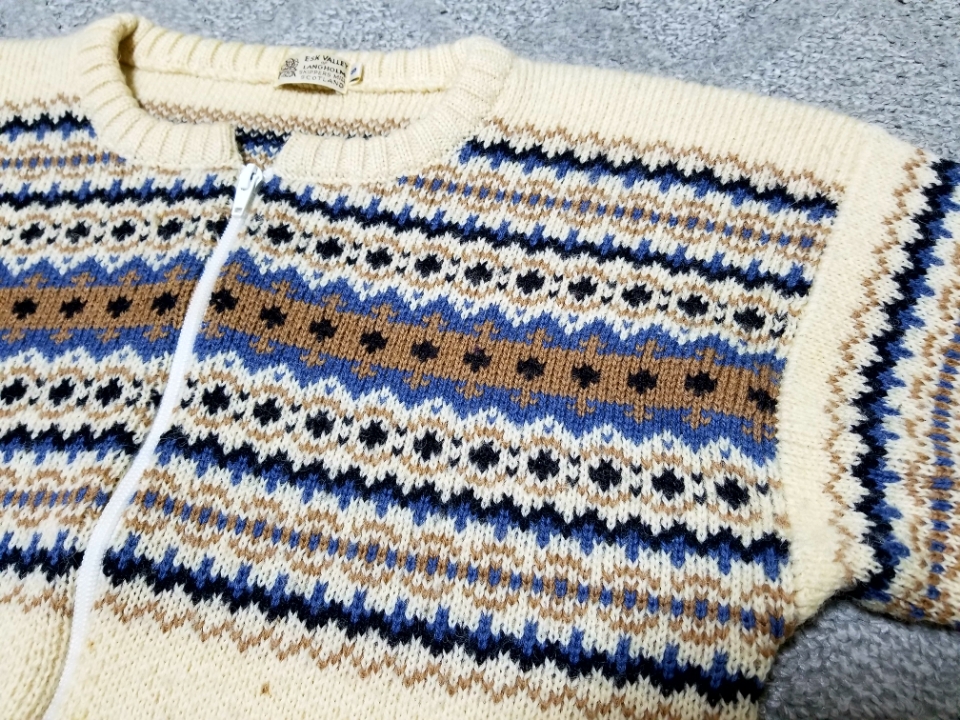 スコットランド製、ESKVALLEYofLANGHOLMのフルジップセーターになります。