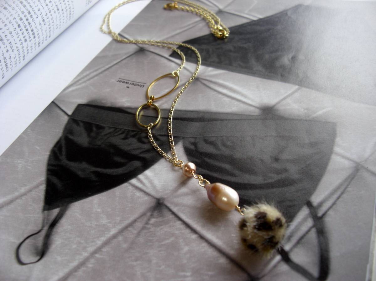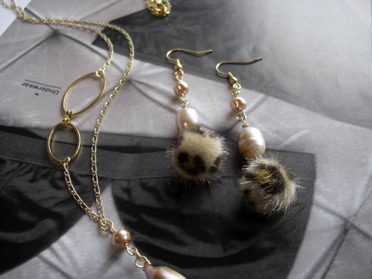 私的スタイル・・シリーズです♪パールとファーと・・個性的なバロックパールとファーボールのネックレスとお揃いのピアスのセットです♪14ミリ位のパープルピンクの母貝つきのバロックパールや小粒のパールに15ミリ位の豹柄のファーボールを合わせてキュートな表情です♪ネックレスの長さは70センチ+アジャスター7センチで最長77センチ位です♪トップは7センチ位です♪ピアスは全長8センチ位です♪イヤリングにも変更出来ます♪それぞれ単品でも出品しています♪ハンドメイドを ご理解頂いてノークレーム、ノーリターンでお願いします