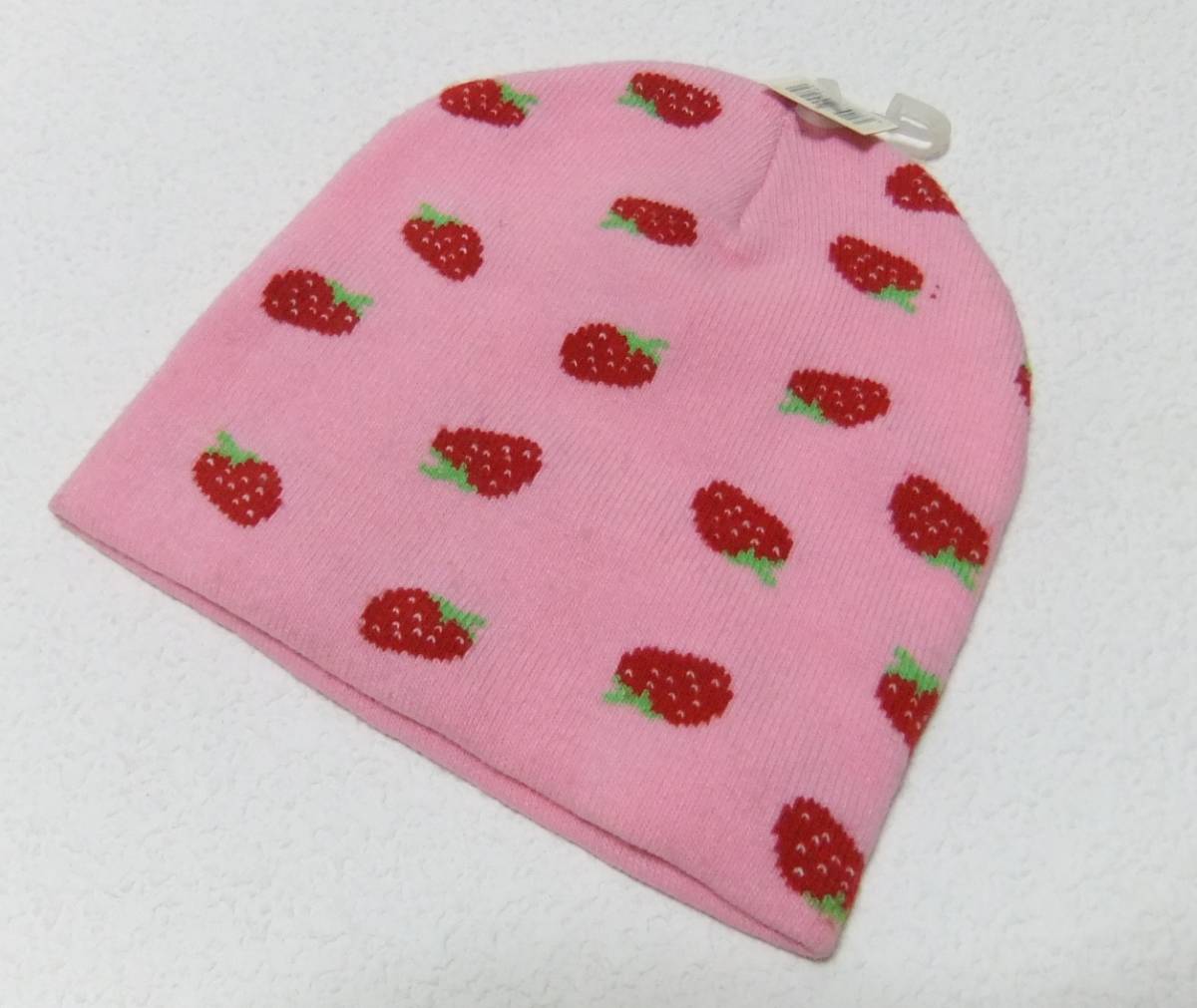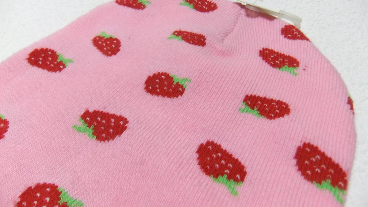 とっても可愛い、イチゴ柄のニット帽です♪