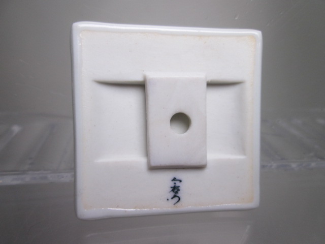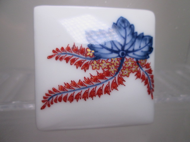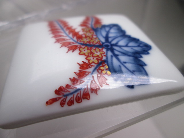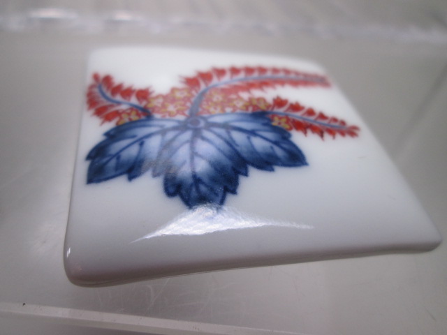 【江月】十三代 今泉今右衛門造 陶製 色絵 羊歯小花の帯留め