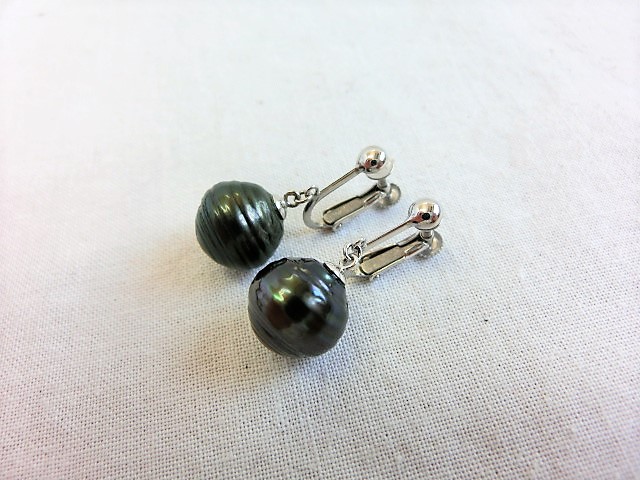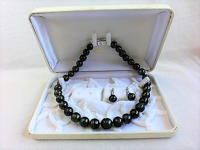 送料無料!! Aren't 黒真珠 (約)11㎜~23㎜ ネックレス/イヤリング (約)12㎜ WGK14 刻印 セット