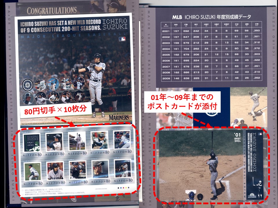 | 商品説明 | メジャーリーグベースボール:シアトルマリナーズ イチロー選手が成し遂げた、前人未到の大記録達成を記念した豪華なプレミアムフレーム切手です。 2001年~2009年の名場面など、9年間の軌跡を感じられる写真を使用した切手シートやポストカードを、豪華なプレミアムホルダーをセットにしてものです。またポストカードがセットされたホルダーの見開き部分にはイチロー選手の特大写真を使用しております。 未開封の新品です。 よろしくお願いします。 |