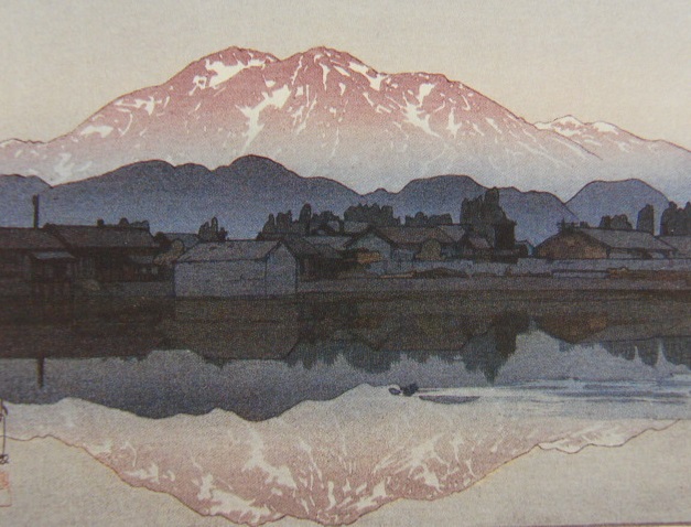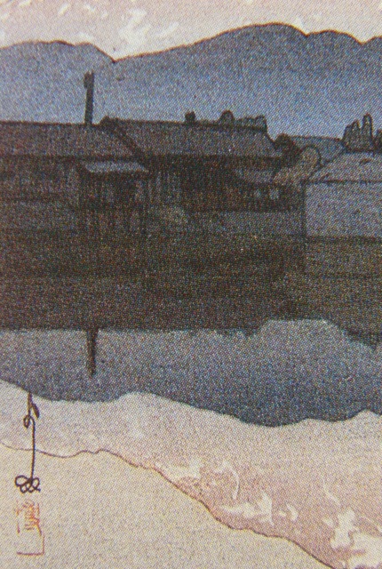 吉田博、【糸魚川にて 朝】、極小サイズ、希少画集画、高級新品額・額装付、状態美麗、送料無料