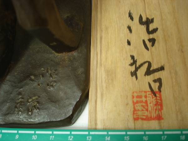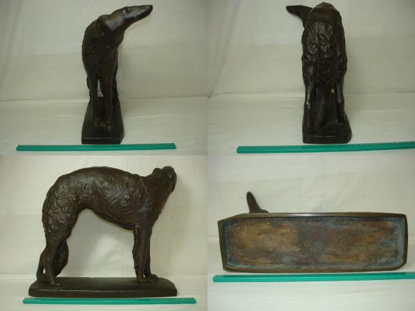 浩祐 (浩佑) 旧銘 刻印 銘入 唐金 狩狼犬 置物。