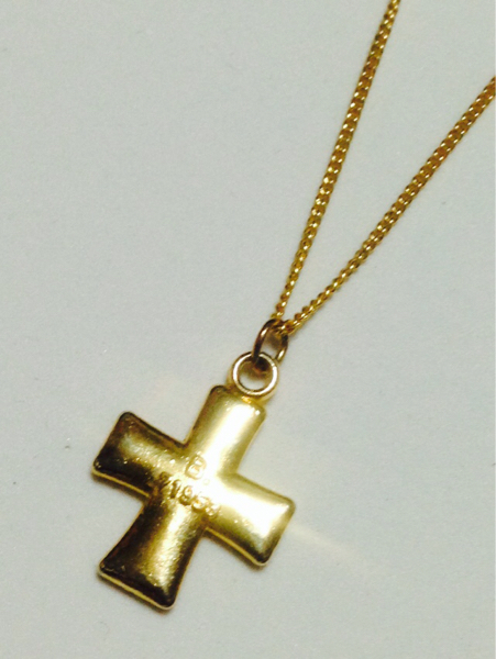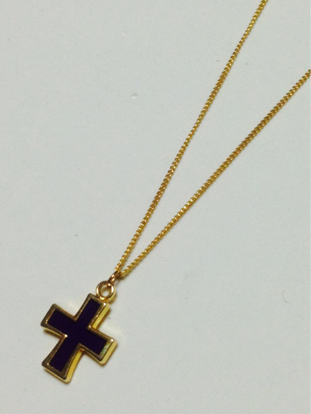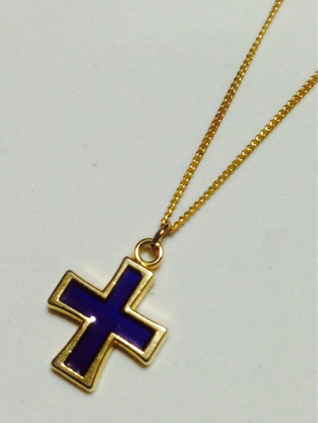 パープルカラーのクロスペンダントネックレスです、エナメル加工が施され美品です、トップは20×15ミリ、チェーンの長さは42センチです