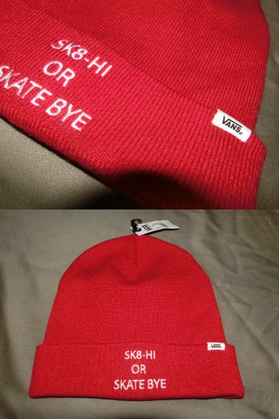 USA購入 バンズ【VANS】【SK8-HI OR SKATE BYE】ロゴ刺繍入りニットキャップ RED