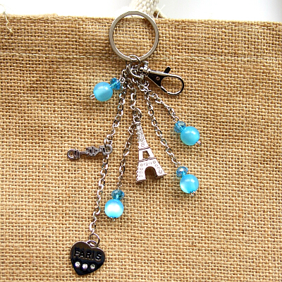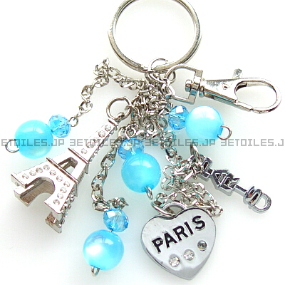 エッフェル塔 キーホルダー 4クリスタルビーズ ラインストーン パリ フランス 新品 日本未発売 送料無料★