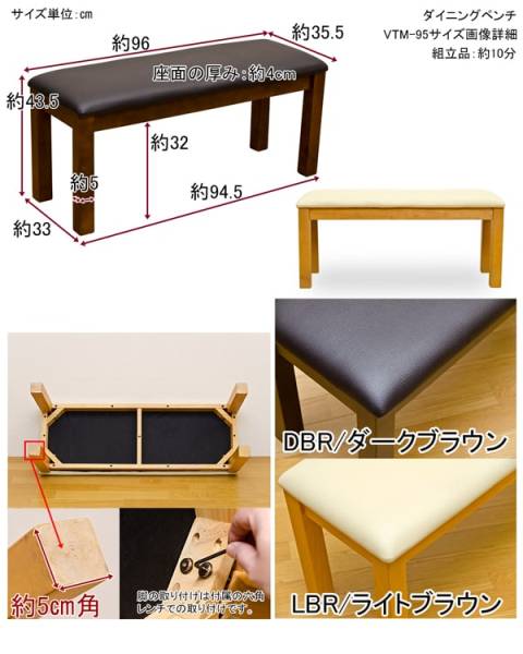 ダイニングベンチ VTM-95DBR ダークブラウン