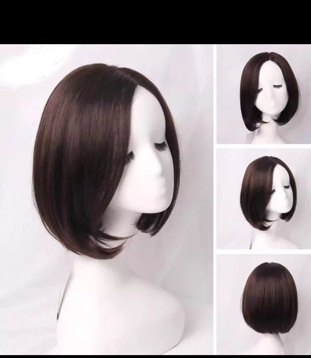 気品人毛100%☆ つむじ部分手植え ボブ ウィッグ DA655 ブラウン
