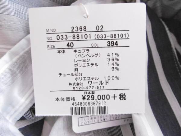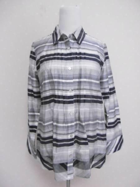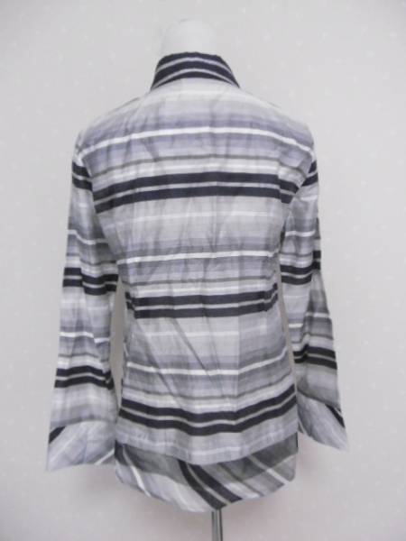 ★ SUTFESO ワールド★ 軽くてオシャレな麻混ブラウス 40 グレー紺ストライプ (0706) 未使用タグ付き