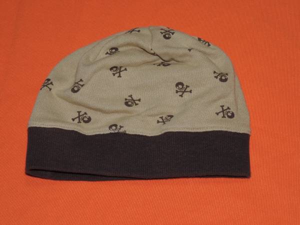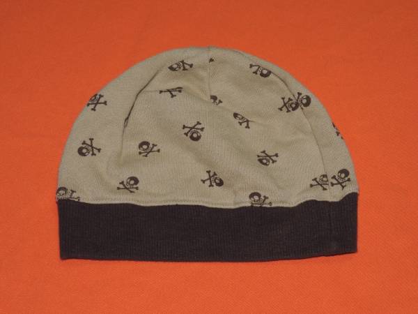 ☆ドクロプリントベージュ色の帽子☆キッズサイズM