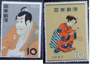 昔懐かしい切手 切手趣味週間 写楽1956/まりつき1957 2枚組