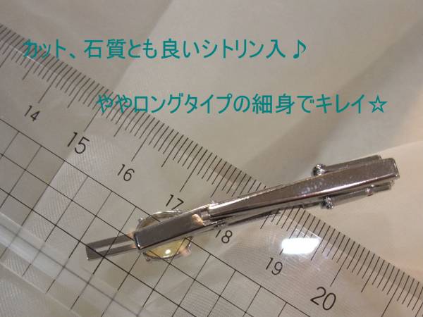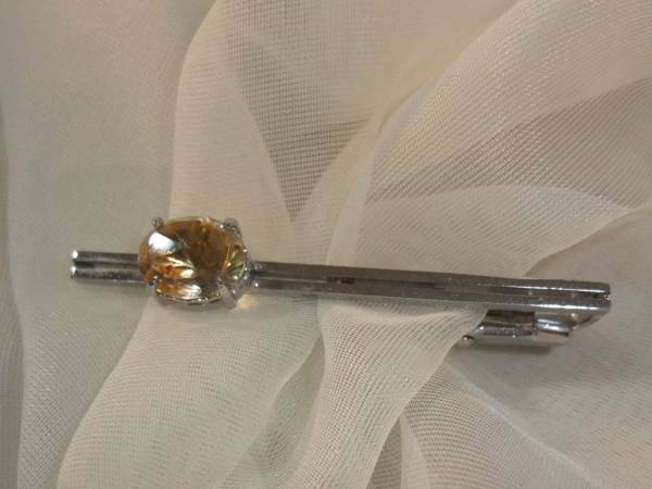 極上カットと色合いのシトリン入♪シルバーカラーのネクタイピンタイバー♪レトロ感がいい♪粋でちょい悪オヤジ系☆未使用美品☆38⑥