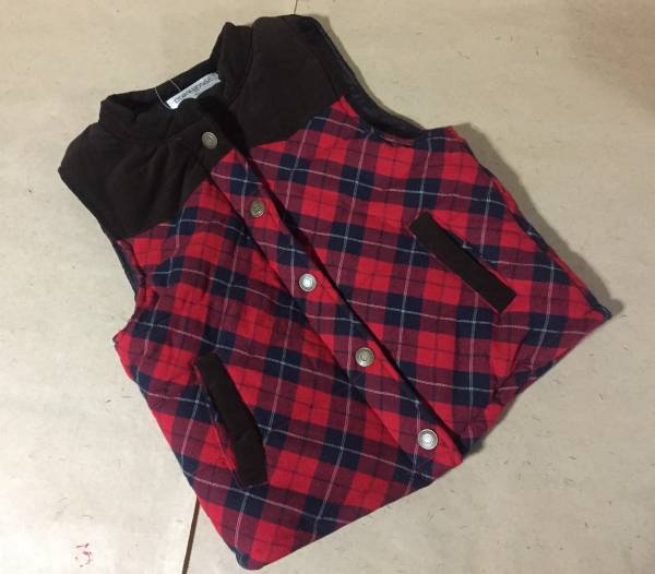 【同梱不可!】ベスト★サイズ/150★茶×赤×チェック柄
