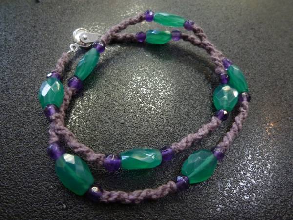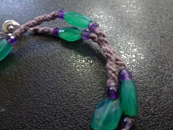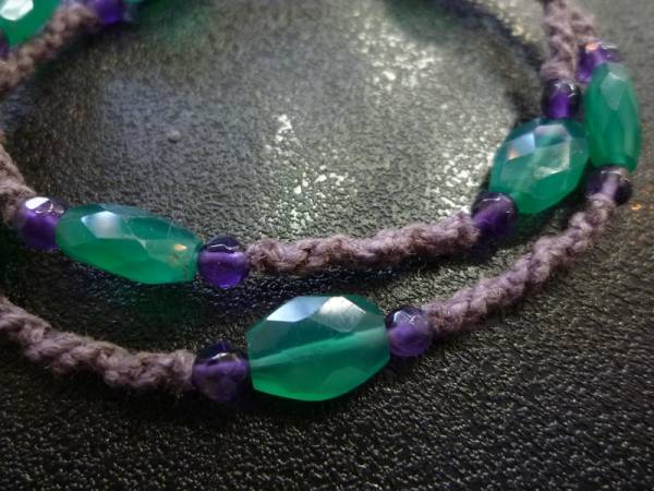 グリーンオニキス アメジスト 2連手編みブレスレット