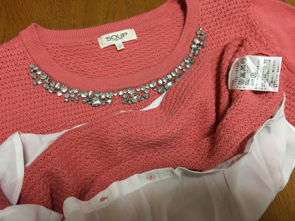 鮮やかなピンクのお色と、胸元のビジュー、裾のシャツのデザインが素敵で、 | ||
