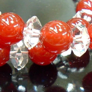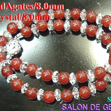 【新品】【上質】【SV:高級天然赤メノウ&極上天然クリスタル デザインネックレス】『A 8.0mm/C 8.0mm』(長さ:約42cm)【エレガント】【高級クラブ使用】【本数限定】【赤字大処分】【収納化粧箱付】【製作元オークション】