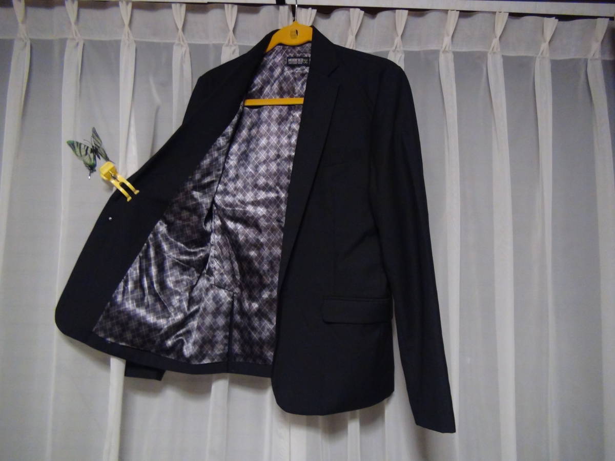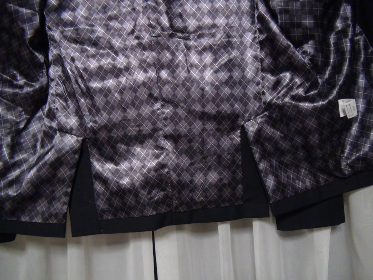 裏地がかっこよく見た目もいいです。袖のボタンも取り外しが出来てかっこいいです。 素材はポリエステル65、レーヨン35、 裏地はポリエステル100%  サイズは(M) 身長165-175  胸囲88-96  着丈65、肩幅42、身幅52、袖丈62センチ 使用頻度S 定価25800円でした。 送料はこちらが負担します。