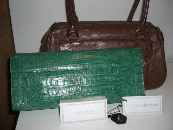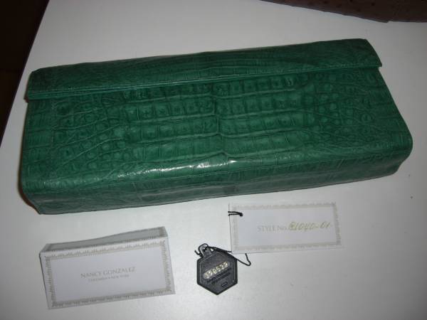 最終雑誌掲載同型送料込 新品ナンシーゴンザレス リアルクロコクラッチバック緑おまけ付(日本製リアルオーストリッチボストン中古)♪