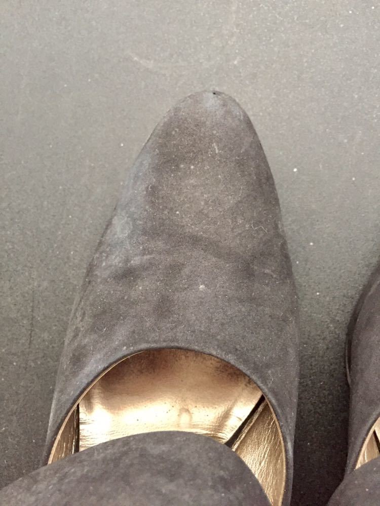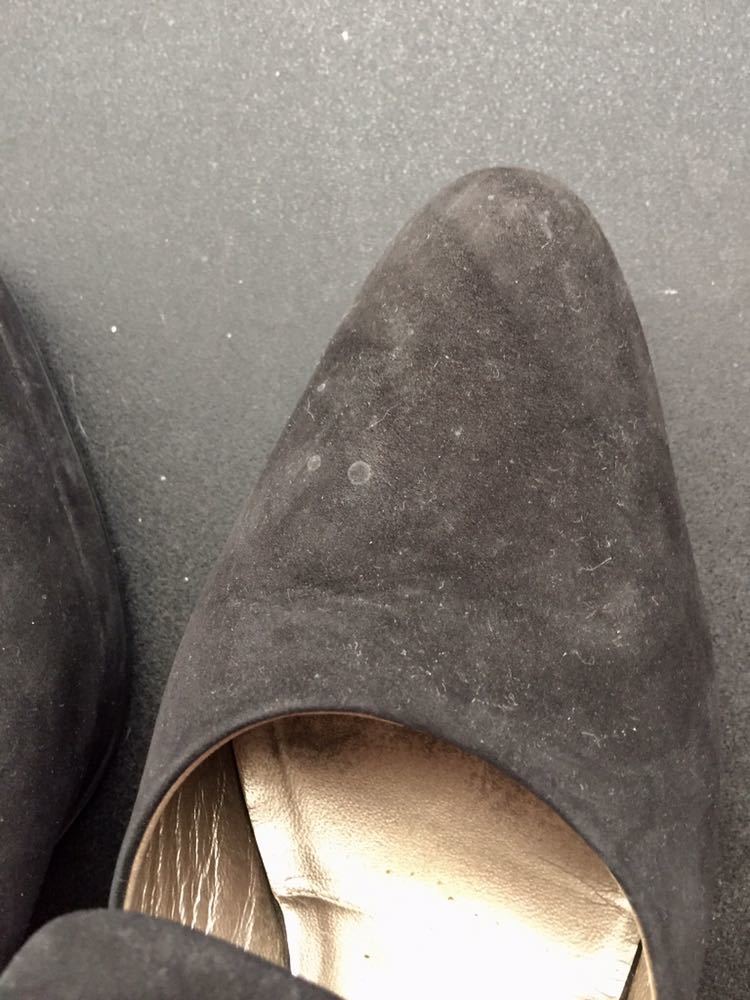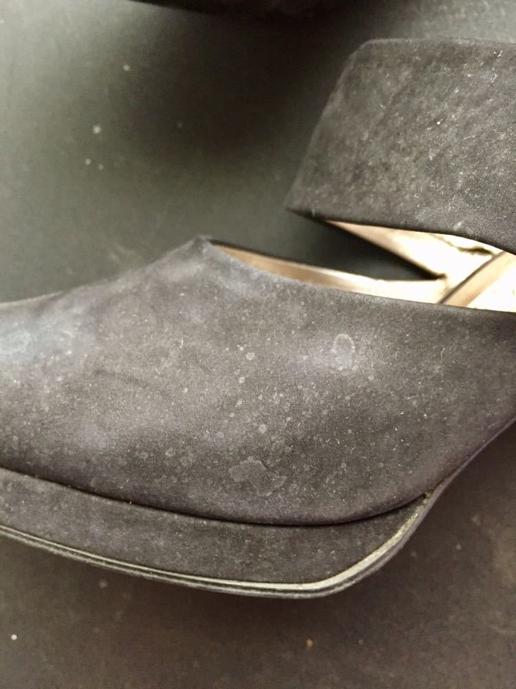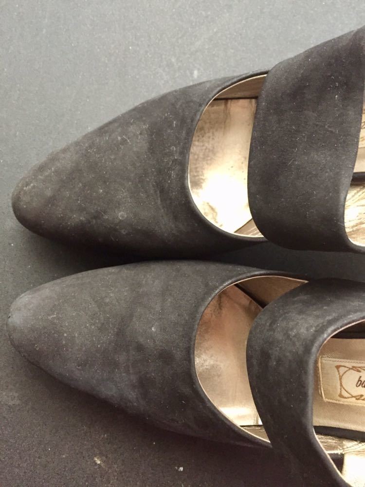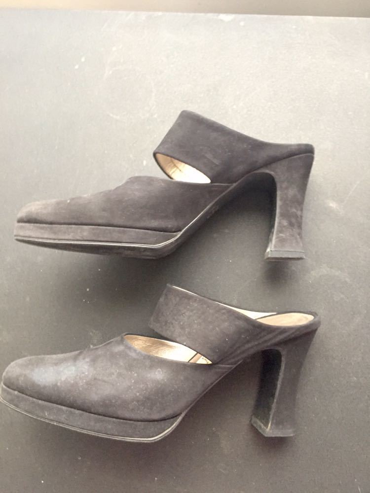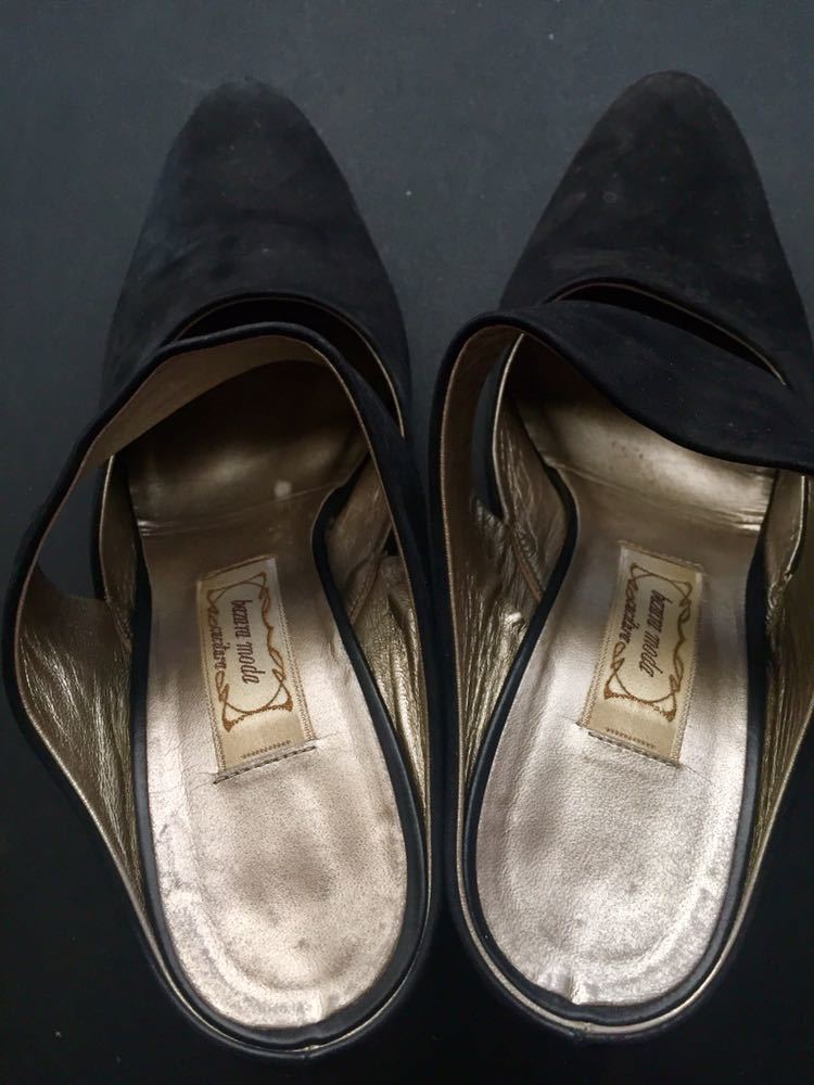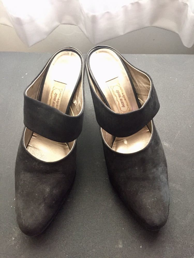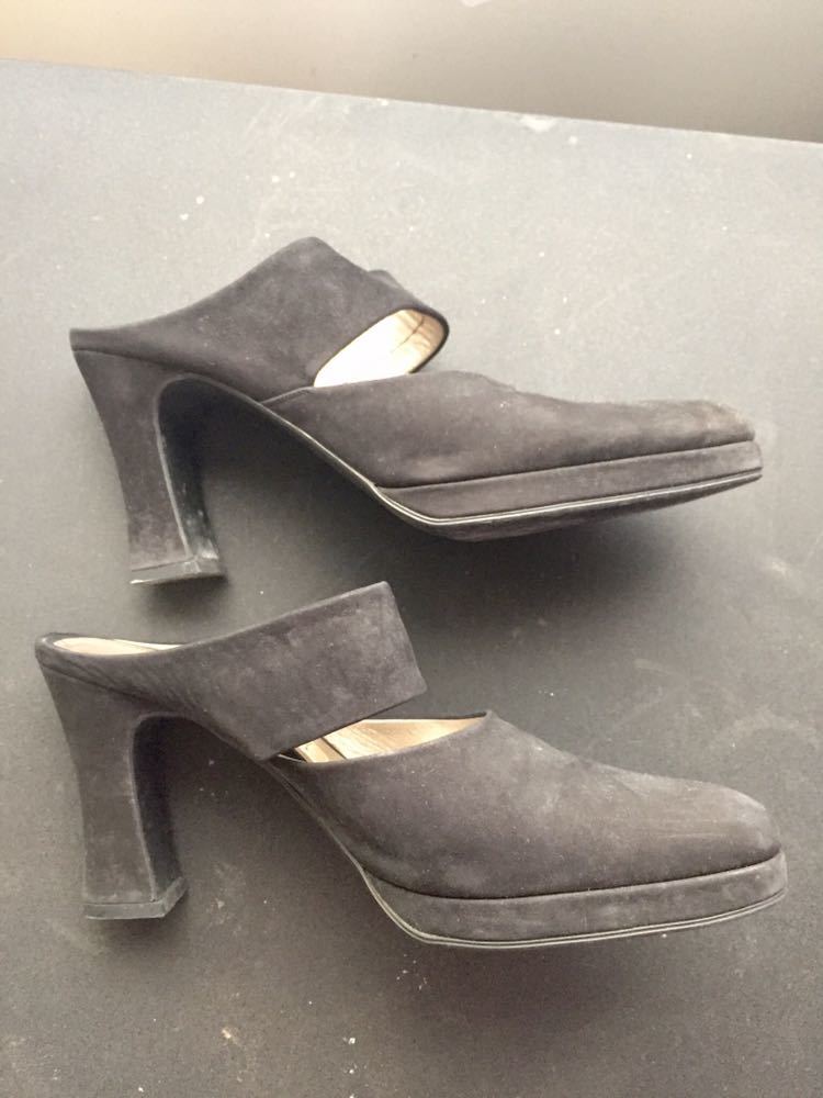 送料¥1350 ⑪ bazaramoda スエード 黒 ミュール  ヒール9.5cm位 暗い場所なら目立たない難あり 23.5 バザラモーダ