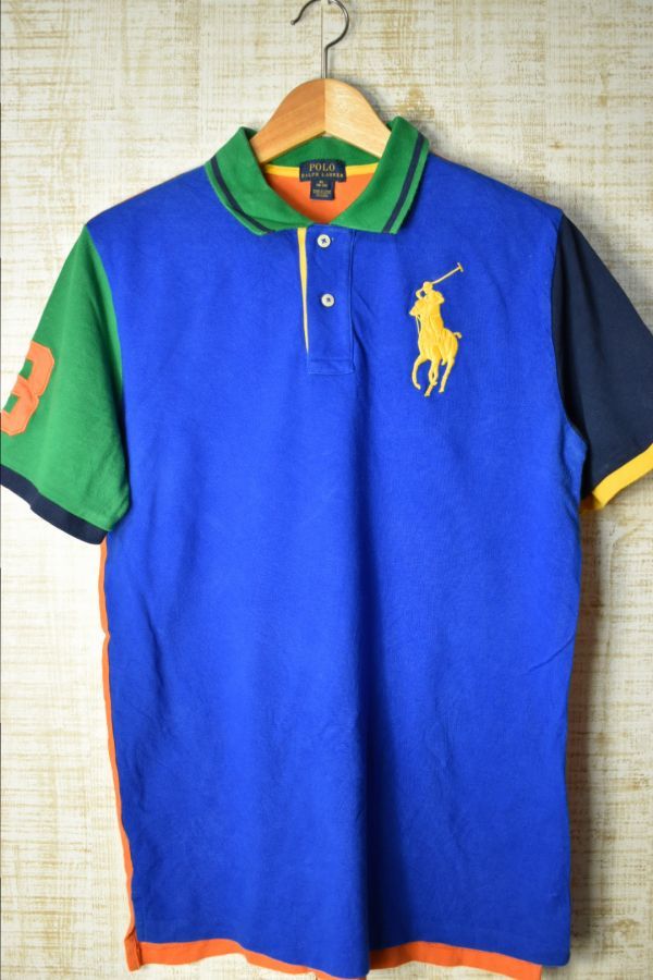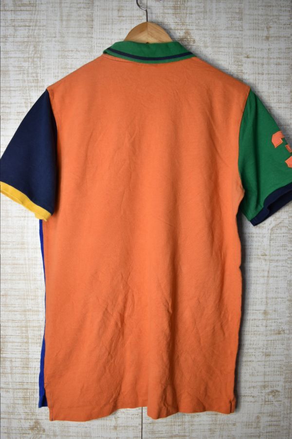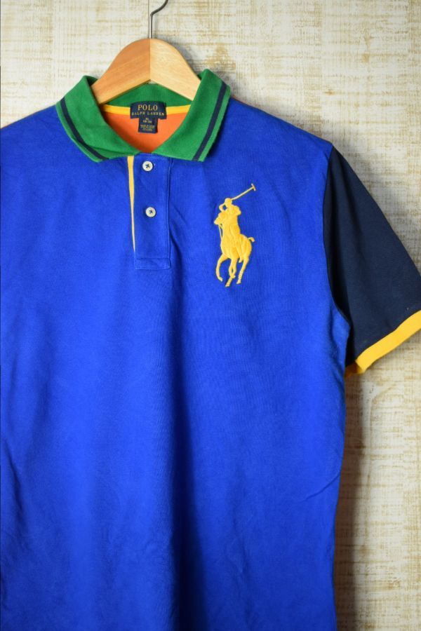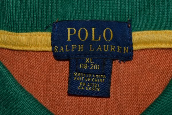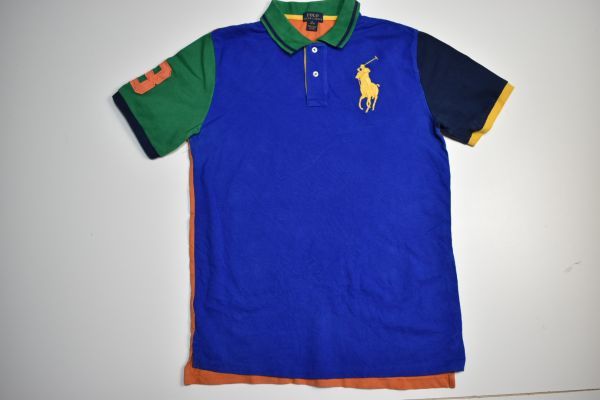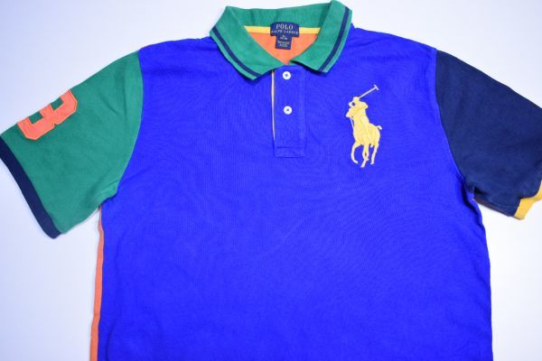 ●US USED POLO Ralph Lauren ラルフローレン ポロシャツ ビッグポニーロゴ刺繍 カラー切り替えデザイン BOYS【XL18-20】